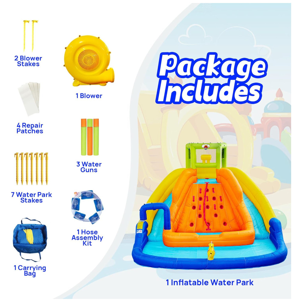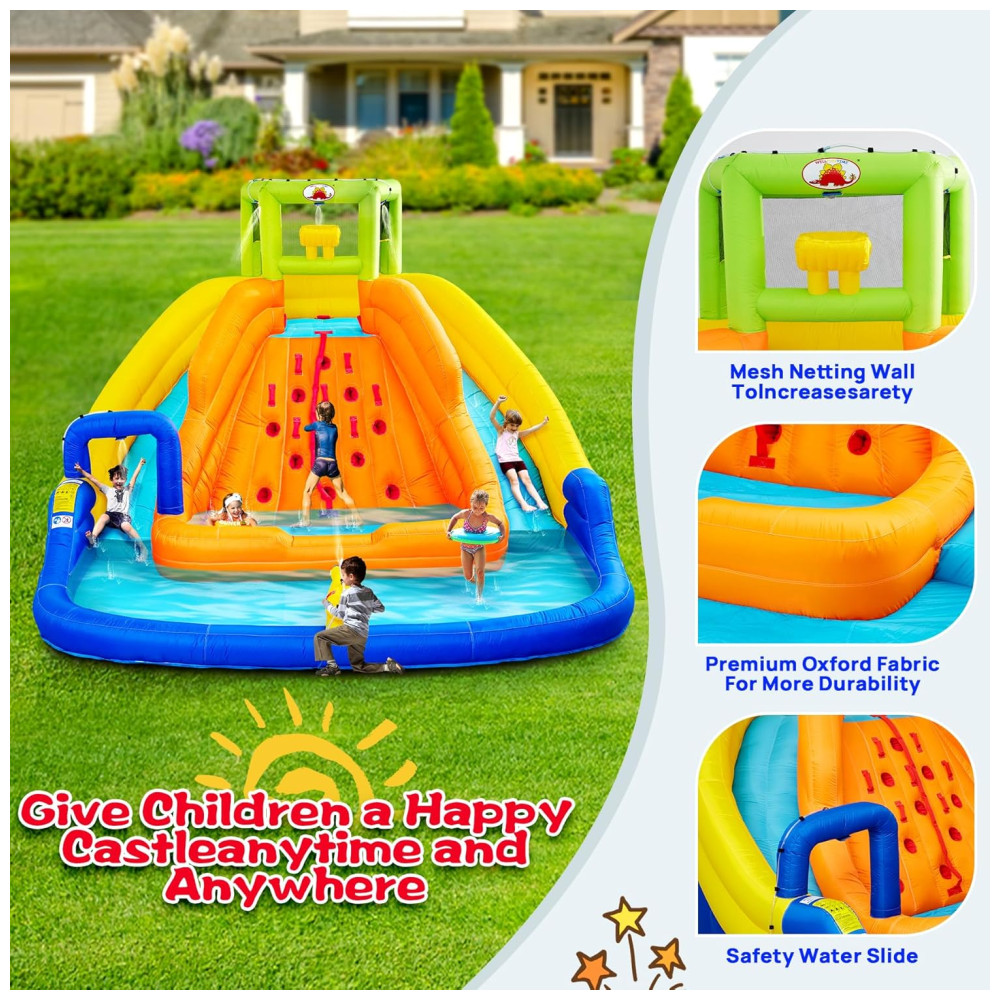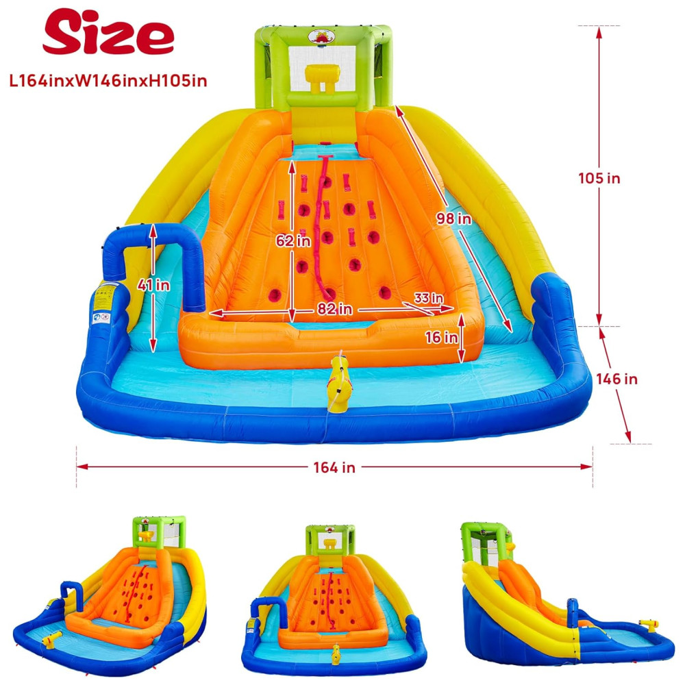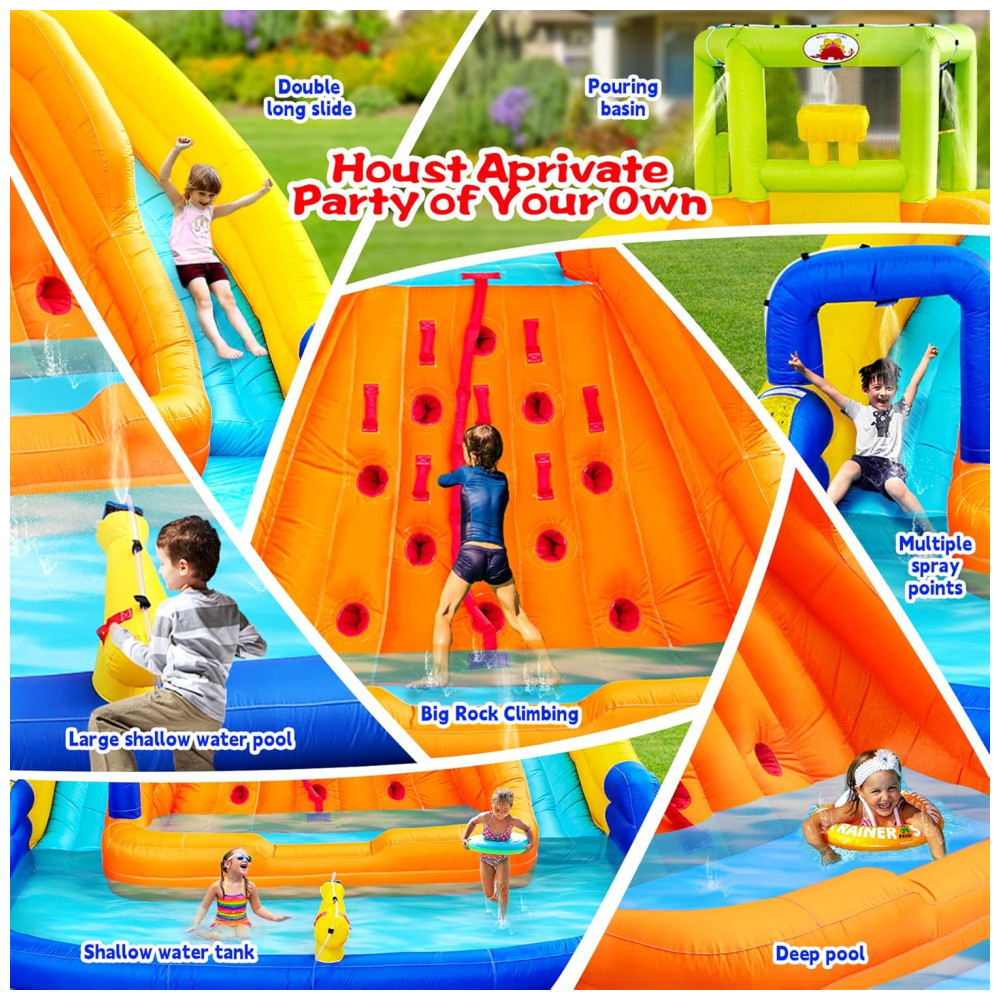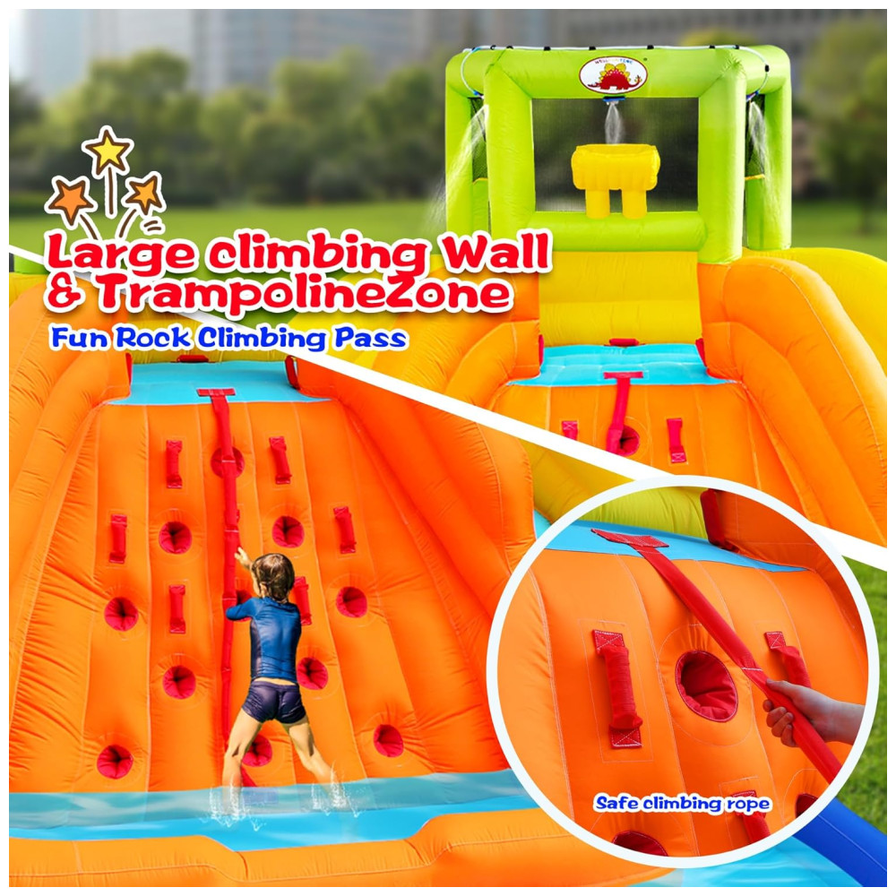 Parque Aquático Inflável Castelo Pula-Pula com Baldinho de Água Piscina Profunda Parede de Escalada com Corda Castelo Saltitante WELLFUNTIME