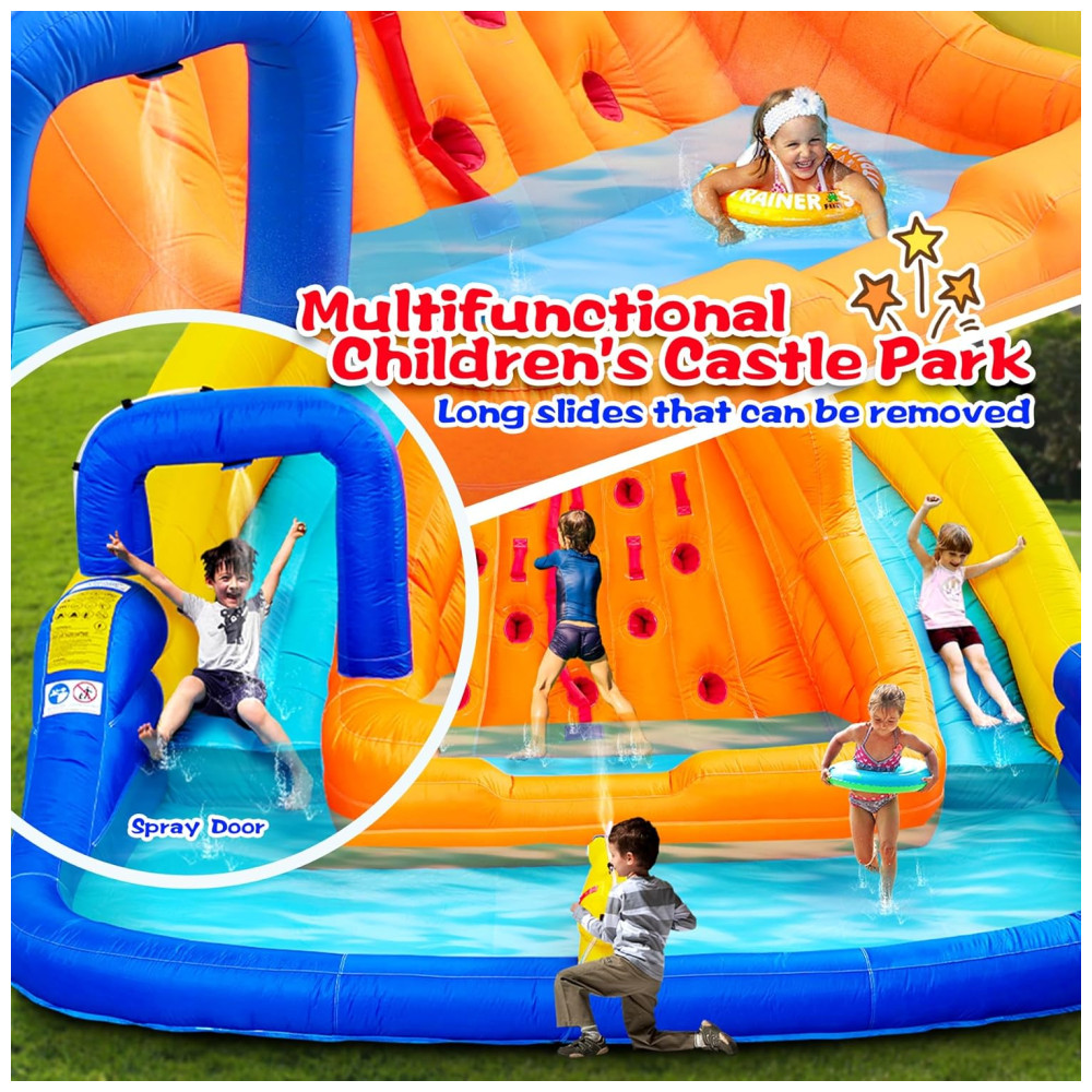 Feito de materiais duráveis e seguros, o Tobogã Inflável WELLFUNTIME é ideal para proporcionar diversão segura e emocionante para crianças. Com área de pulo confortável, paredes de escalada, escorregadores com pulverizador e piscina profunda, o castelo inflável oferece uma variedade de atividades aquáticas. As cordas na parede de escalada permitem uma experiência de escalada divertida. Fácil de instalar, inflar e desinflar, além de ser compacto para transporte e armazenamento. Com capacidade para até 3 crianças, é o cenário perfeito para uma festa aquática única e cheia de aventuras.