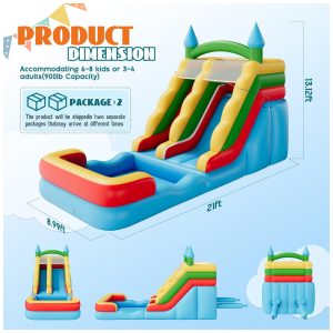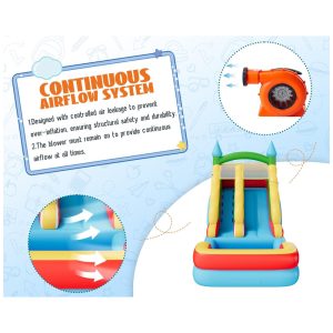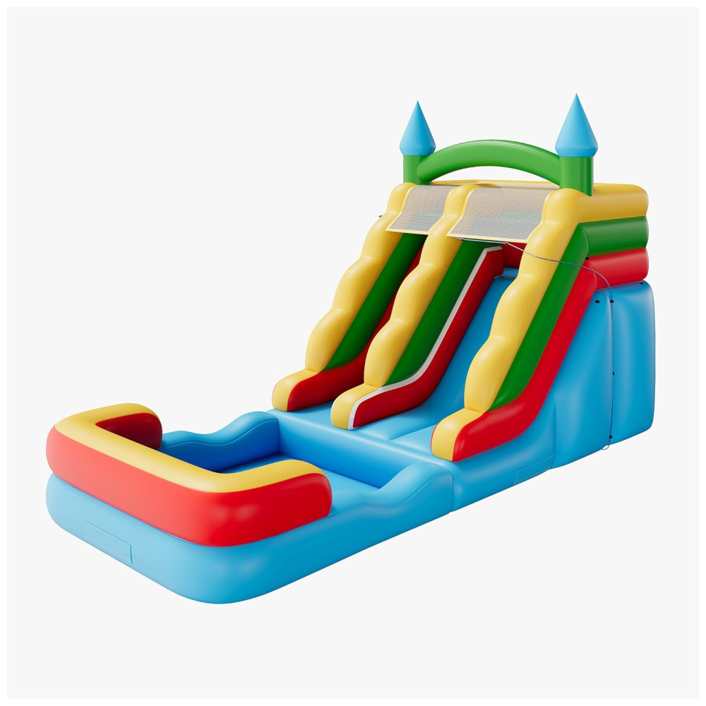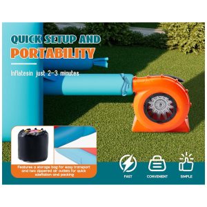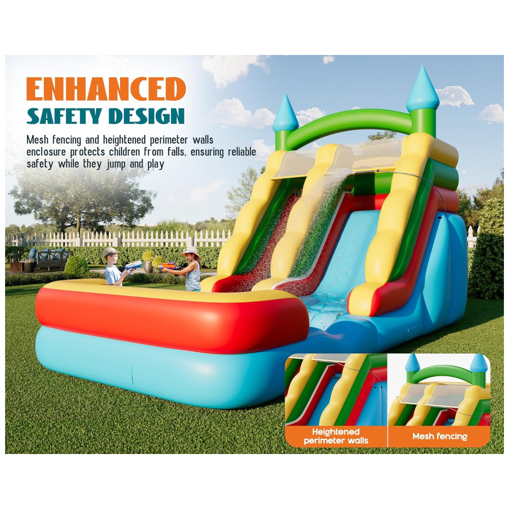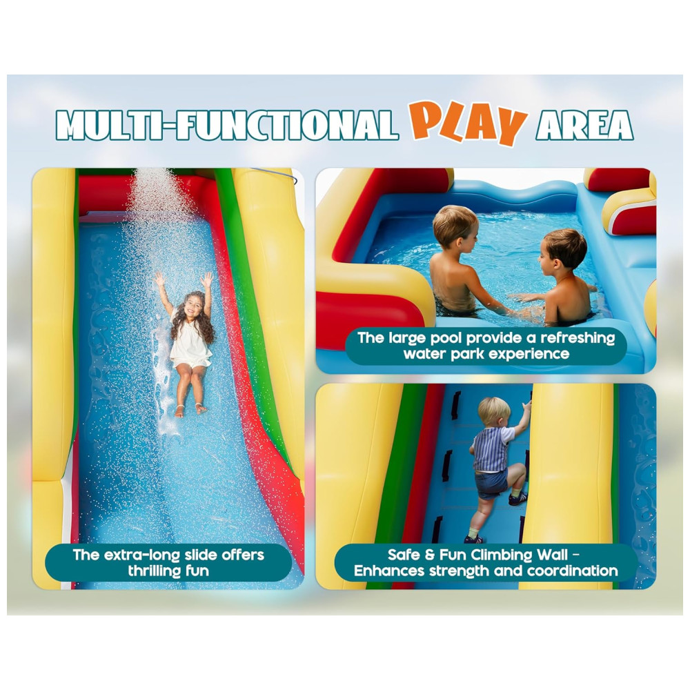 Transforme qualquer dia em um festival de diversão! Este castelo inflável da Albott traz risadas, escorregões e respingos para a vida de festas de aniversário a encontros de fim de semana. Projetado para até 6-8 crianças brincarem juntas, ou para os pais se juntarem para momentos familiares preciosos. Aventura de castelo feita para brincadeiras reais, com escalar, escorregar, pular e dar um mergulho em uma piscina pronta para água. Ideal para diversão em família ou profissional, garantindo durabilidade com PVC resistente, suportando até 900 libras. Possui paredes altas, trilhos seguros e uma ampla entrada para garantir saltos seguros. Certificado pela SGS com material 100% PVC. Montagem em minutos com o inflador de 2HP incluso. Fácil de guardar e transportar, perfeito para festas, eventos escolares e acampamentos de verão.