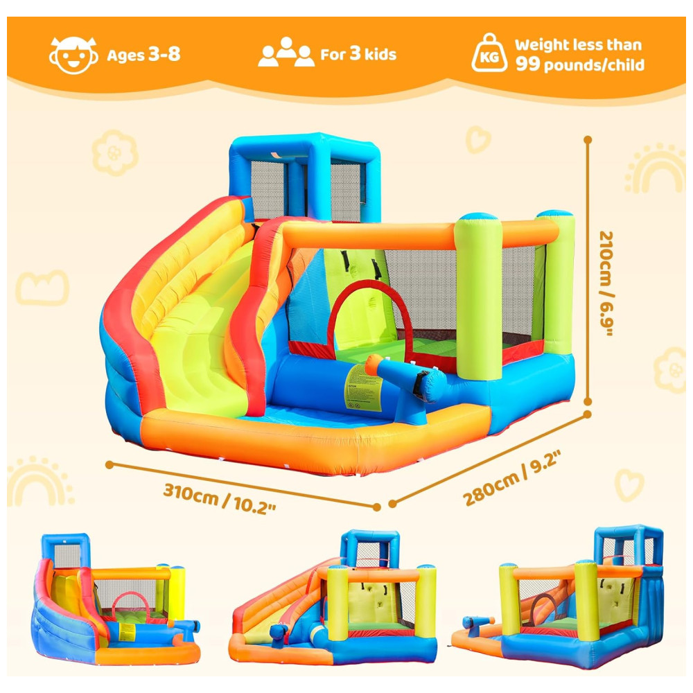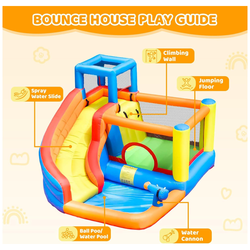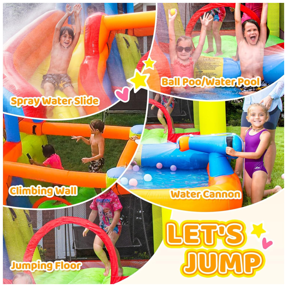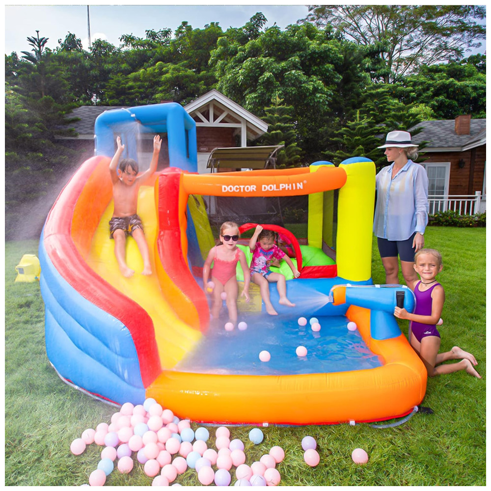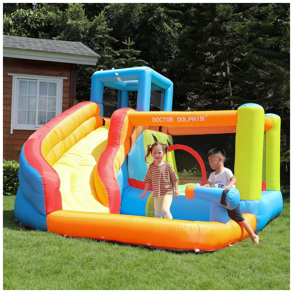A Casa de Pulos Inflável Doctor Dolphin é o sonho de diversão das crianças no quintal! Com um design seguro e de alta qualidade, proporciona momentos inesquecíveis na infância. Equipada com função de spray d’água, tubo e conector, é perfeita para estimular a atividade física, diversão e crescimento saudável das crianças. Fácil de instalar, possui materiais resistentes a perfurações, área de pulo espaçosa, piscina de água para jogos aquáticos e é feita de tecido durável. Seu filho vai adorar!