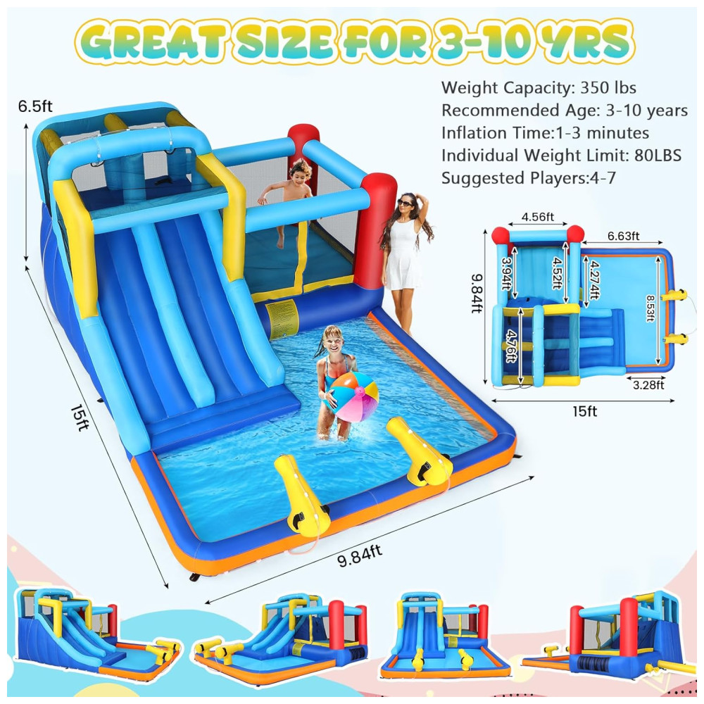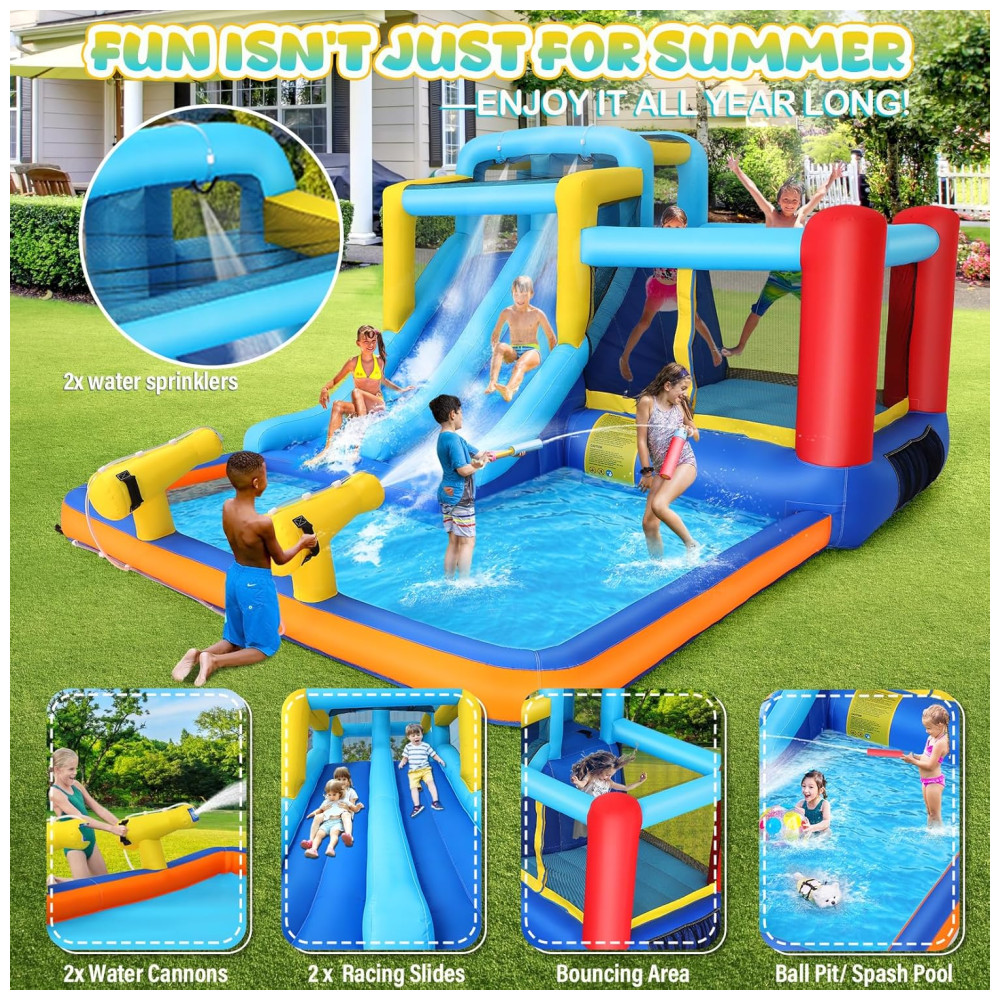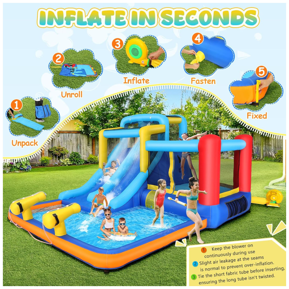 Parque Aquático Inflável Escorregador Whubefy 457×304 metros para Crianças – Diversão Infinita com 9 em 1: Pula-Pula Escorregador Piscina Zona de Salto