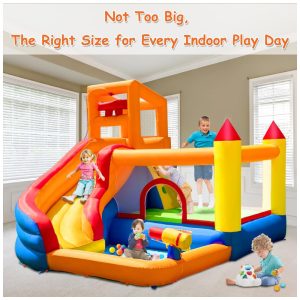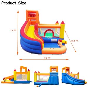 Transforme o quintal ou a sala da sua casa em um parque aquático com o Parque Inflável HuaKastro! Pode ser usado tanto em dias quentes ao ar livre quanto em dias chuvosos ou frios dentro de casa. As crianças vão se divertir em vários espaços de brincadeira interconectados, incluindo piscina, cama elástica, parede de escalada e escorregador longo. O balde aquático surpresa derrama água enquanto as crianças escorregam. O divertido toboágua molhado desemboca na piscina, enquanto a pistola d’água adiciona mais diversão. O parque inflável é fácil de montar com o soprador de ar poderoso incluído, garantindo segurança e estabilidade. Feito com material resistente e durável, suporta até 120 kg. Ideal para crianças de 3 a 10 anos. Deixe as festas de aniversário ainda mais radiantes com este presente fantástico!