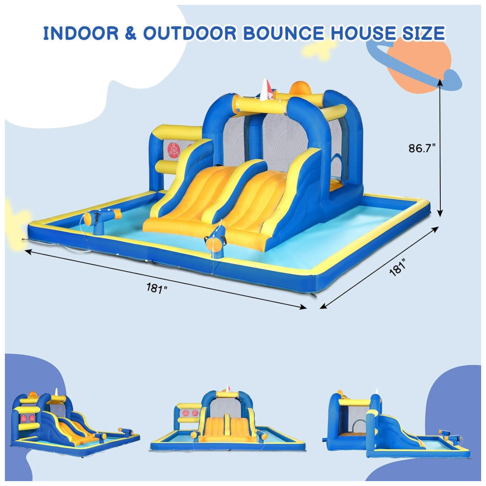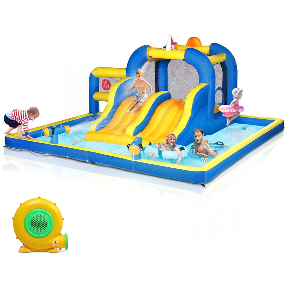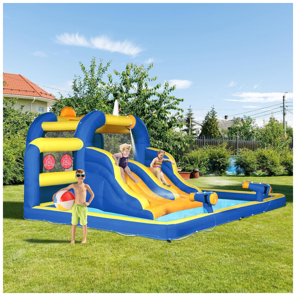 Parque Aquático Inflável Ktaxon com Tobogã Duplo Piscina de Água e Jogo de Basquete para Diversão ao Ar Livre