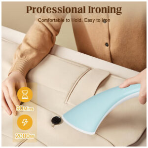 O vaporizador de roupas profissional de 2000W da Cobuy aquece em 35 segundos, proporcionando 90 minutos de vapor contínuo. Com vapor de 40g/min a até 98°C, penetra e amacia as fibras, suavizando rugas teimosas em roupas, cortinas e estofados. Com design 2 em 1, é possível alternar entre steaming vertical e horizontal, garantindo controle preciso. Com 10 níveis de vapor ajustáveis, tanque de água transparente de 2,7L e hastes duplas ajustáveis, é ideal para diferentes tipos de tecidos, protegendo as roupas e permitindo um vapor profundo para remoção eficaz de rugas.