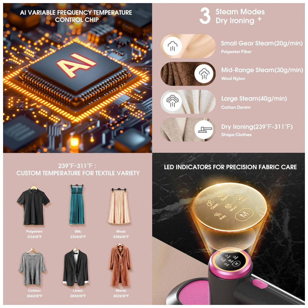 PassadeiraSteamer e Vaporizador Newbealer 2 em 1 Pro Steam Station 1550W Turbo de 3 Níveis Vapor Seco para Roupas