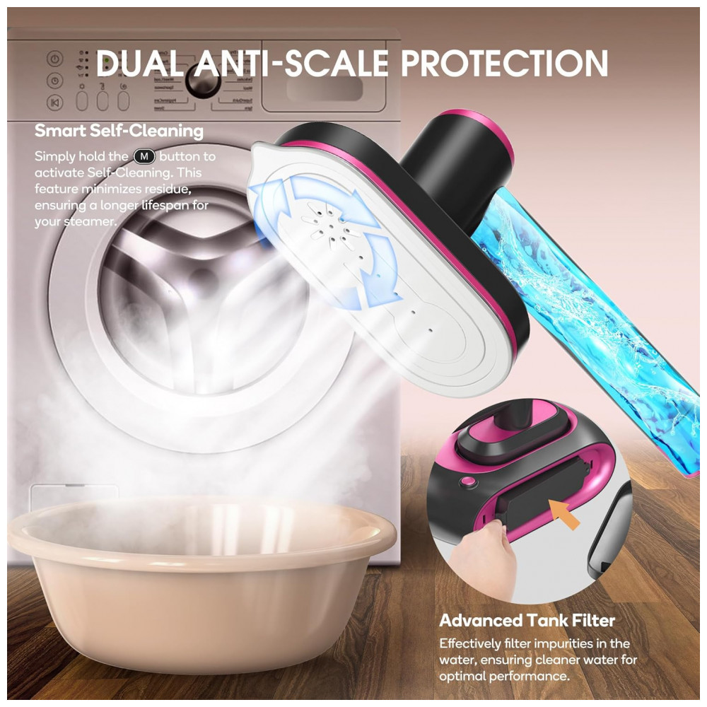 O Ferro de Passar Estação a Vapor Profissional Newbealer apresenta um potente sistema de 1550W, aquecendo em apenas 30 segundos e utilizando a avançada tecnologia de vapor PSA com 3 configurações, proporcionando até 40g/min de vapor. Com um tanque removível de 1.2L para 40 minutos de vaporização, a remoção de rugas torna-se rápida e sem esforço, elevando sua rotina de passar roupas. Este versátil e inovador aparelho destaca-se tanto no passar horizontal quanto vertical, com design antiderramamento de 360°. Leve e ergonômico, com 3 kg, possui base de cerâmica diamantada e flexibilidade de 90°, tornando-se um aliado indispensável em casa. Perfeito para lares modernos, oferece opções de pendurar com gancho e suporte de parede, ideal para varandas, entradas ou armários. Seu design compacto garante uma experiência de passar roupas sem bagunça e se integra perfeitamente a qualquer ambiente. Comercialmente graduado para cuidar de tecidos delicados a pesadas peças de hotel, com recursos de segurança como desligamento automático de 10 minutos, trava de segurança, base antiescaldo e interruptores independentes, garantindo uma experiência de passar roupas confiável e segura. A função de autolimpeza em um passo aprimora a durabilidade. Este vaporizador premium, completo com funil de silicone, kit de montagem na parede e manual do usuário, possui um design elegante que simplifica o passar roupas para todas as peças da família. Sua multifuncionalidade e aparência elegante o tornam uma adição impressionante a qualquer lar, mantendo a elegância do guarda-roupa o ano todo.