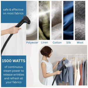 Benefícios do Produto: Remove rugas sem esforço, higieniza e elimina odores em roupas com vapor ajustável de longa duração,