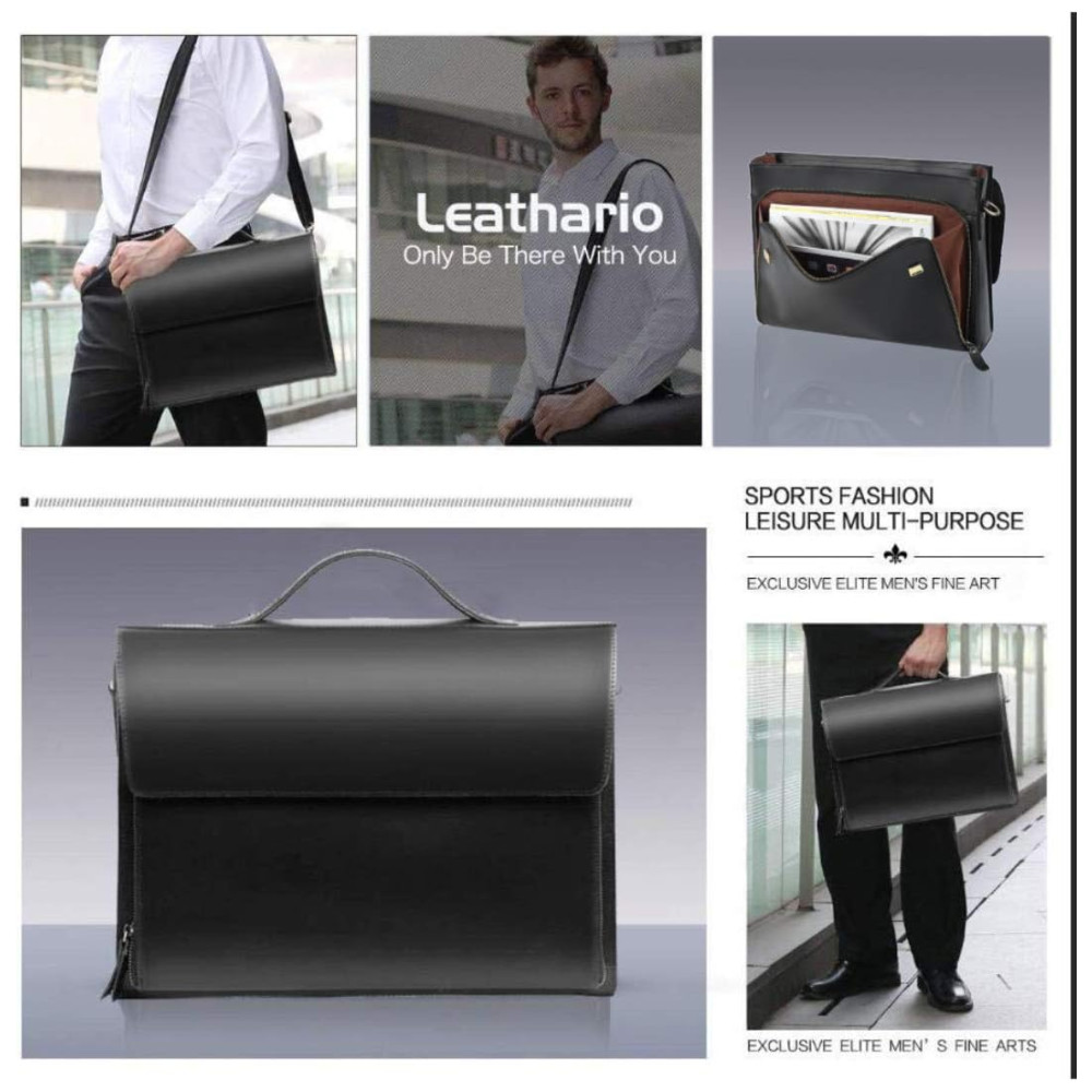 Pasta Bolsa de Couro Masculina para Trabalho Laptop Empresarial LEATHARIO 8541572825 Preto
