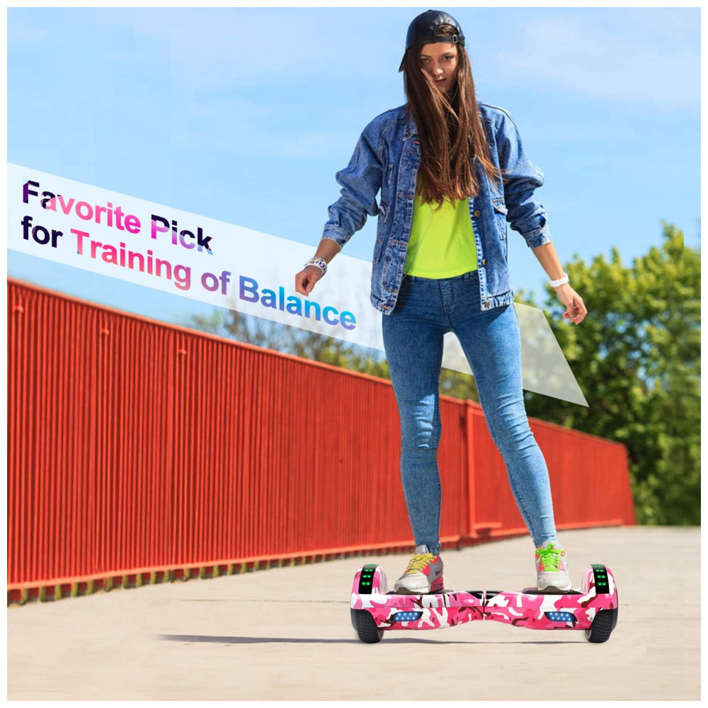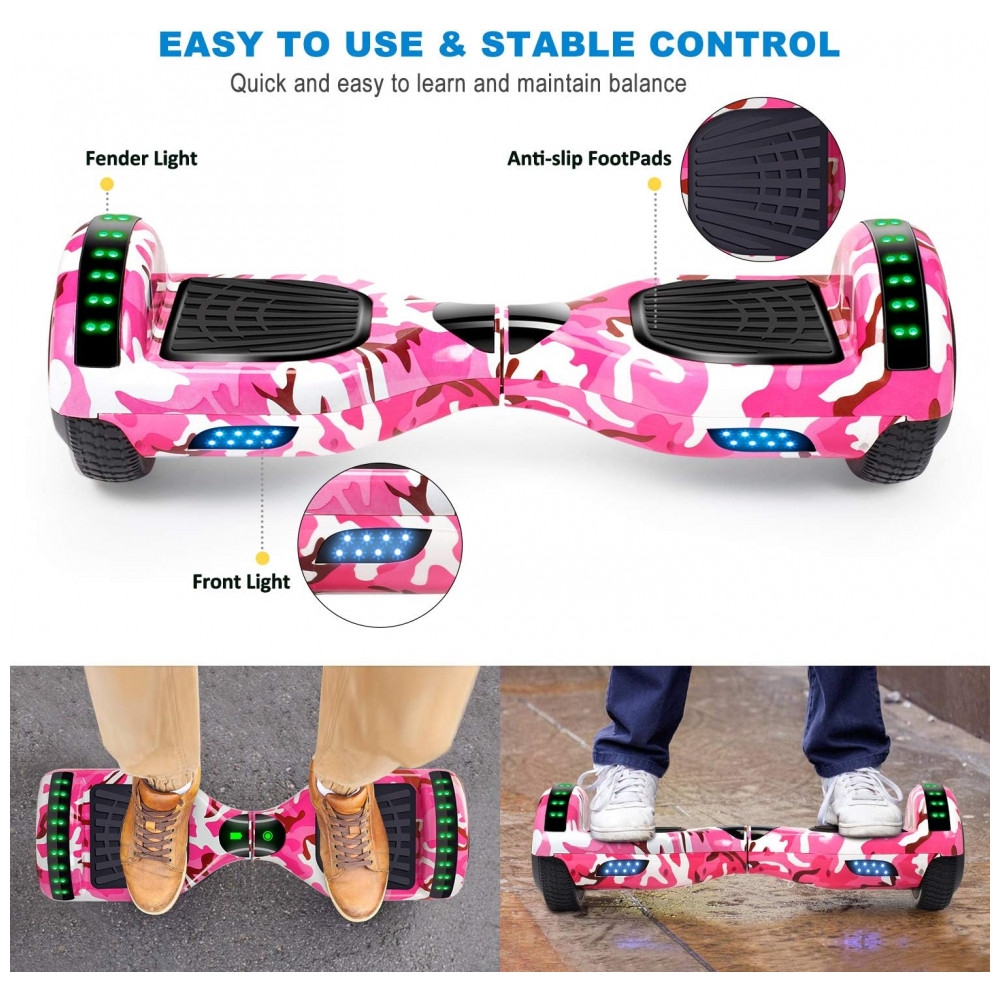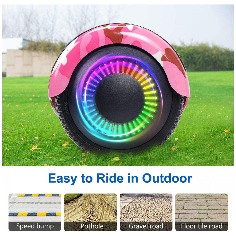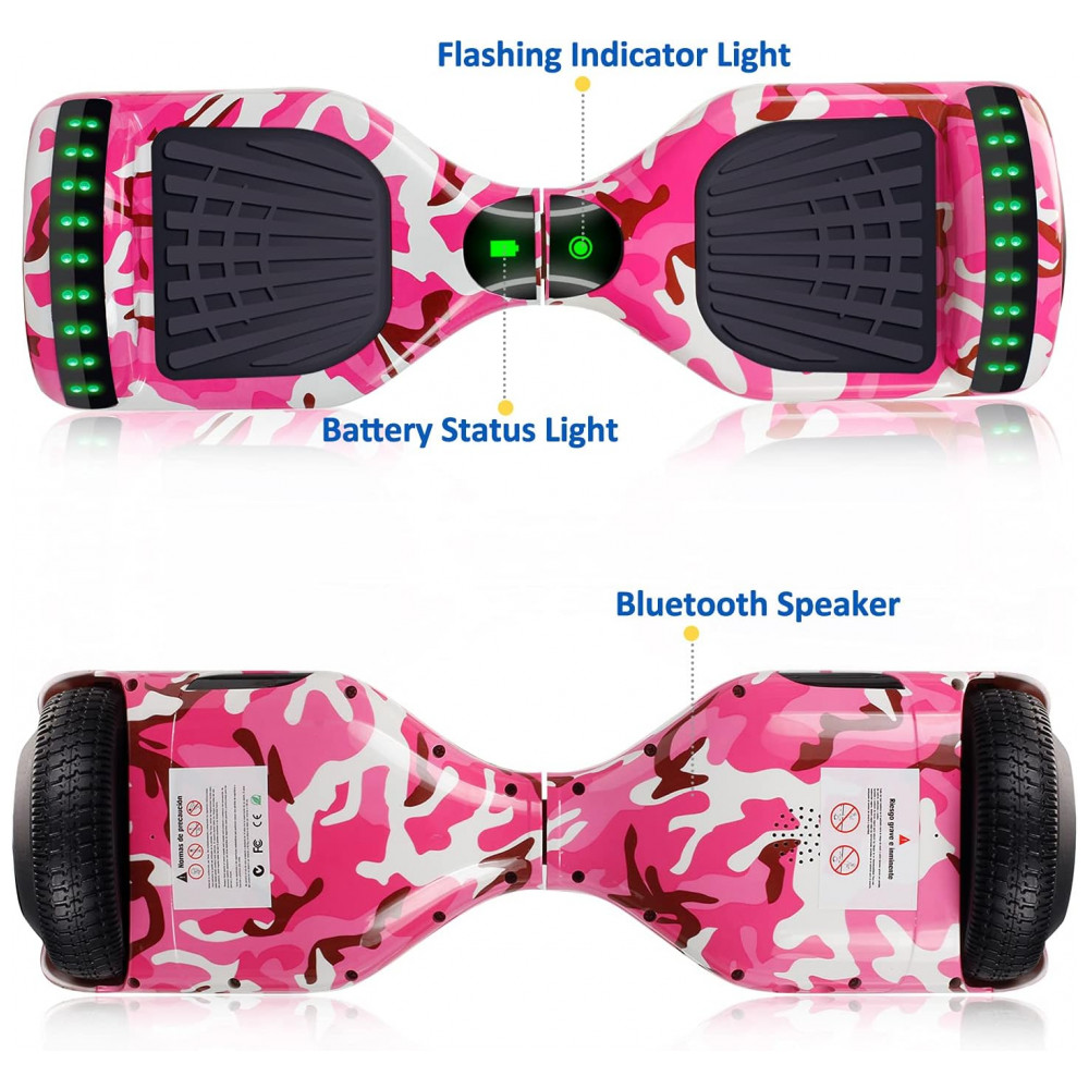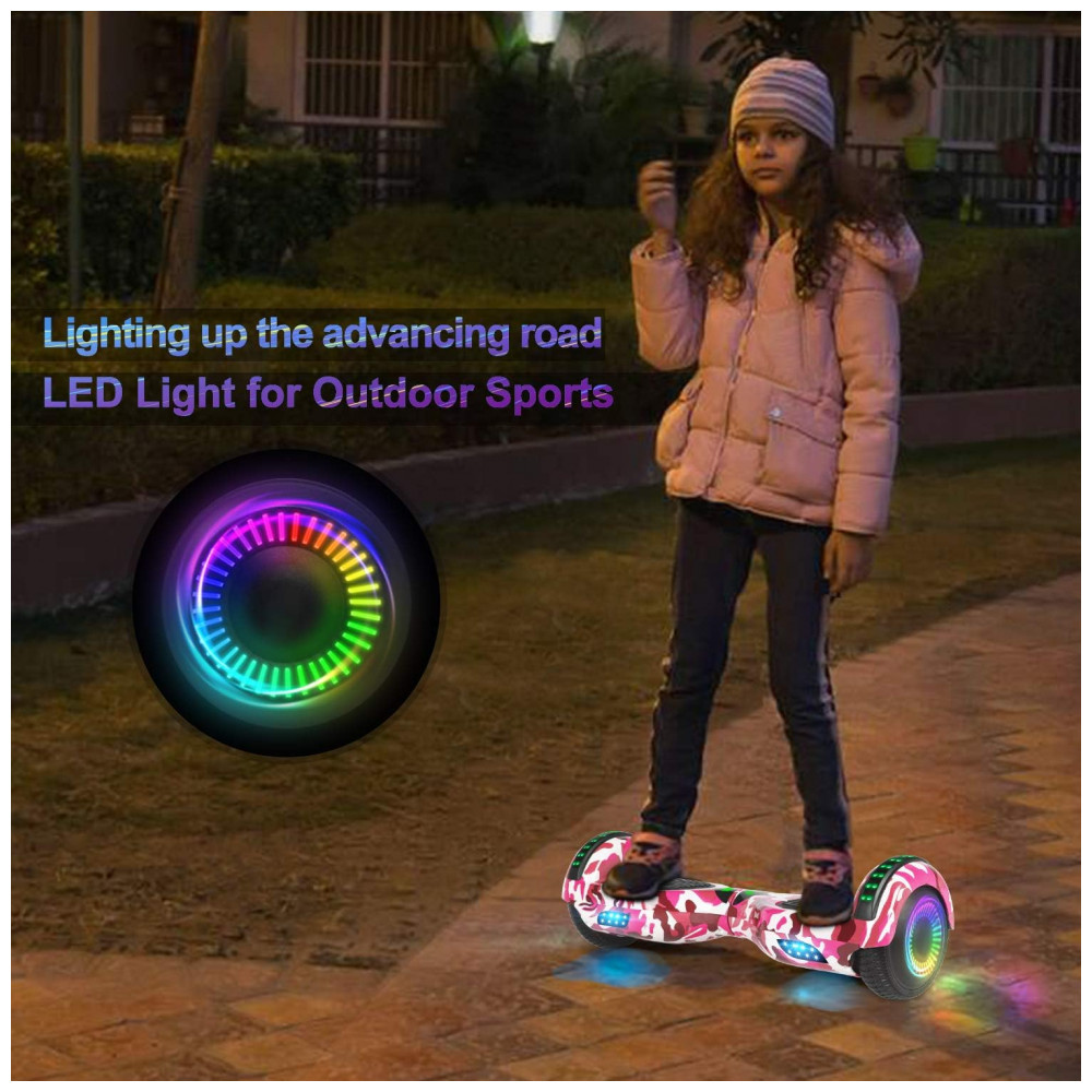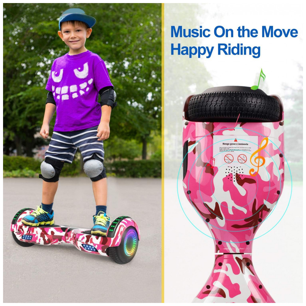 Patinete Elétrico Auto Balanceante FLYINGANT 65″ Vermelho A03 Camo Pink com Alto-falante e Luzes LED