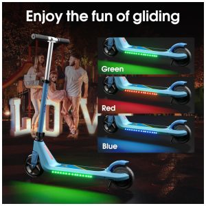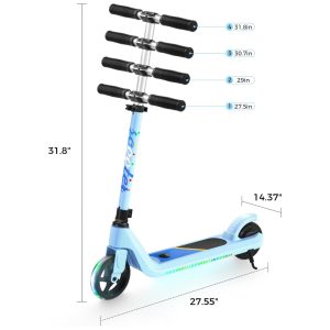 A scooter infantil foi projetada com guidão ajustável e 4 opções de altura ajustável, permitindo que as crianças encontrem a altura de pilotagem perfeita. É indicada para crianças de 6 a 10 anos e é equipada com rodas dianteiras iluminadas em PU e luzes LED nos pedais, tornando a divertida e altamente visível.
