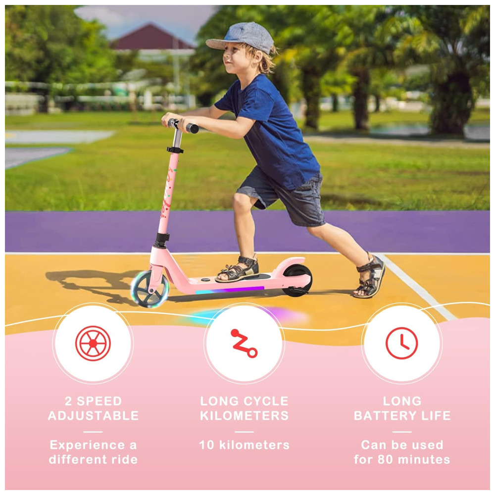 Patinete Elétrico Infantil com Velocidade e Altura Ajustáveis para Crianças de 6 a 10 Anos LINGTENG E8 Rosa