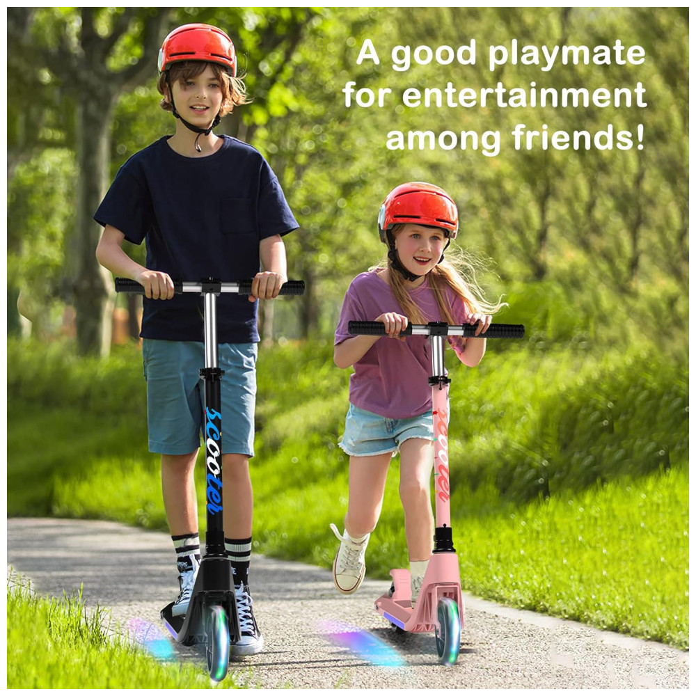 A scooter infantil foi projetada com guidão ajustável e 4 opções de altura ajustável, permitindo que as crianças encontrem a altura de pilotagem perfeita. É indicada para crianças de 6 a 10 anos e é equipada com rodas dianteiras iluminadas em PU e luzes LED nos pedais, tornando a divertida e altamente visível.
