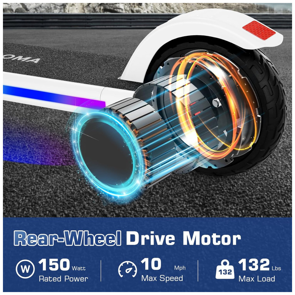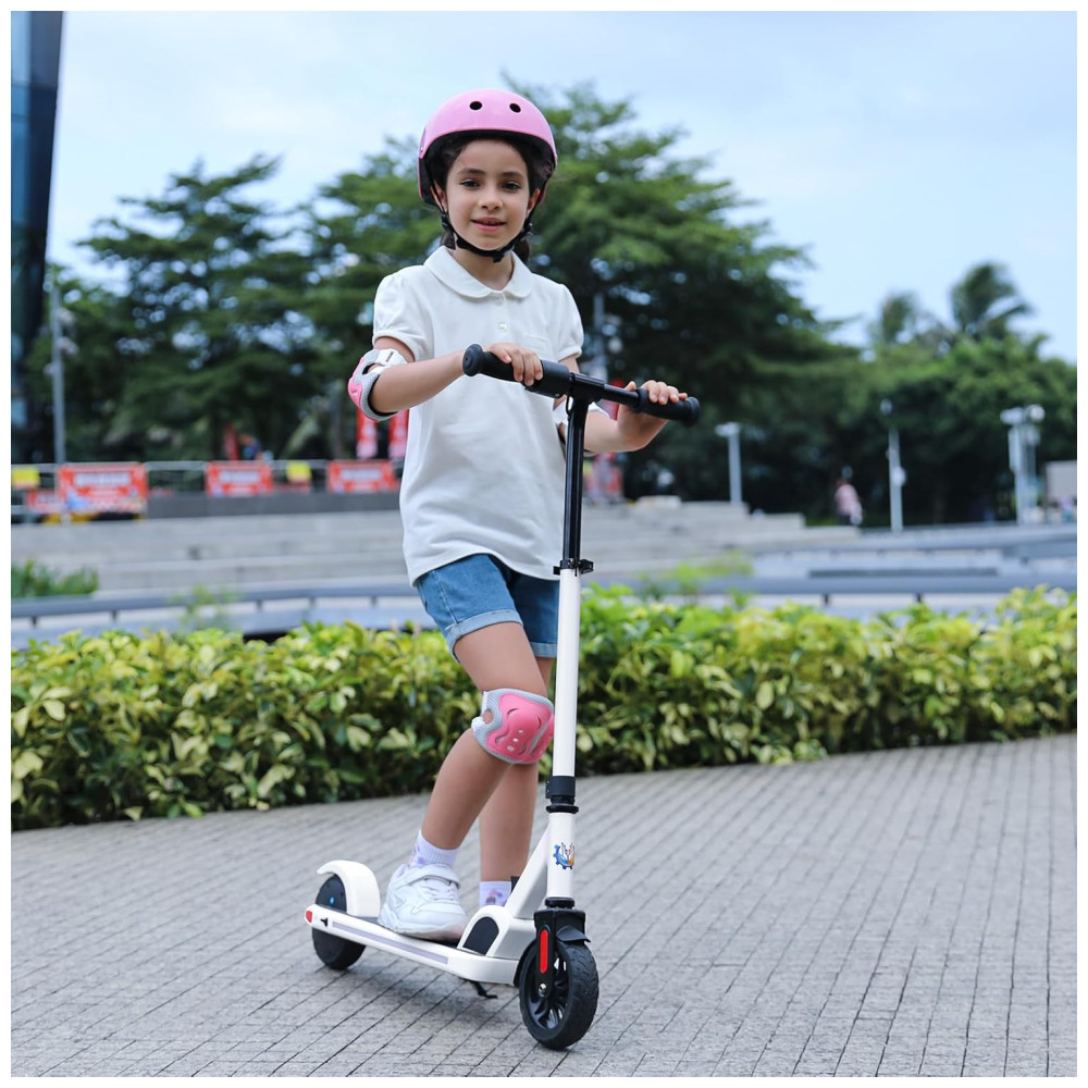 A scooter elétrica Caroma é perfeita para crianças de 8 a 12 anos que desejam se divertir com segurança. Com cinco opções de cores disponíveis, a scooter vem equipada com pedais coloridos que não apenas tornam a condução elegante e divertida, mas também melhoram a visibilidade e a segurança na estrada. A scooter possui um motor potente de 150 W e três modos de velocidade, permitindo que você ajuste a velocidade máxima de 8 km/h, 12 km/h ou 16 km/h de acordo com sua preferência e condições de pilotagem.