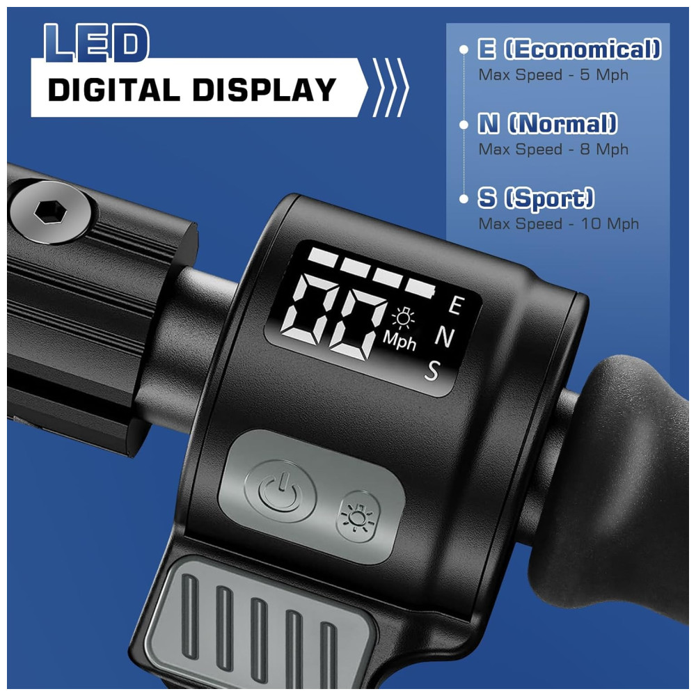 Recurso especial display digital, altura ajustável do guiador, dobrável