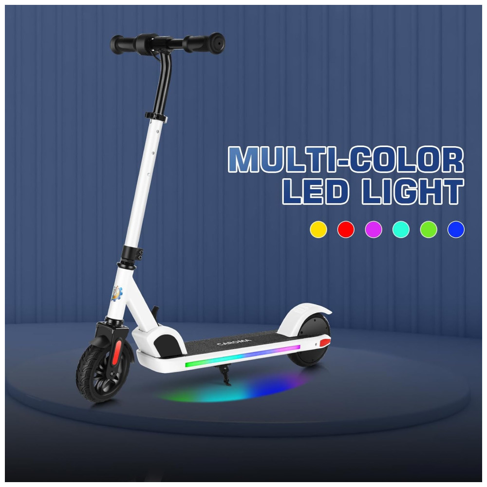 Patinete Elétrico Infantil Dobrável com Velocidade e Altura Ajustáveis Luzes Coloridas e Display LED para Crianças de 8 a 14 Anos 150W Caroma E35 Branco
