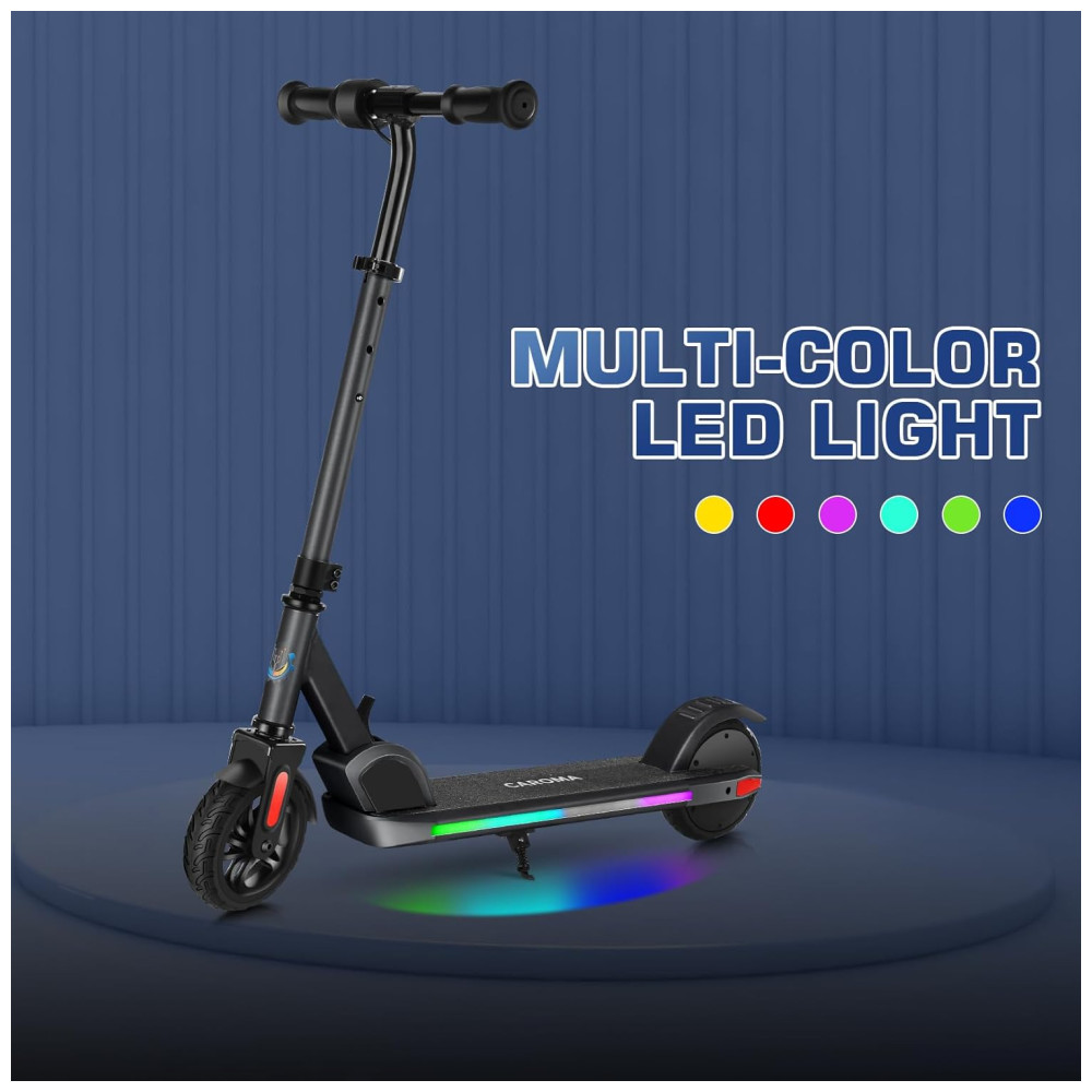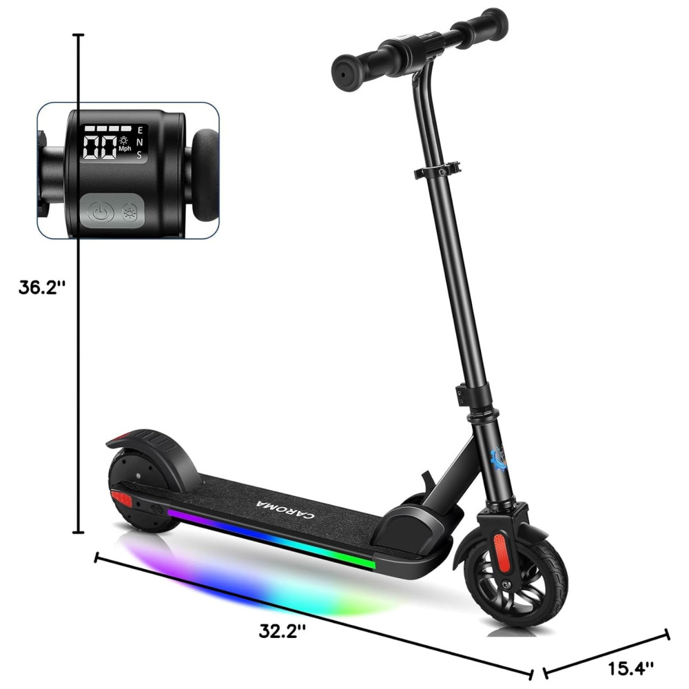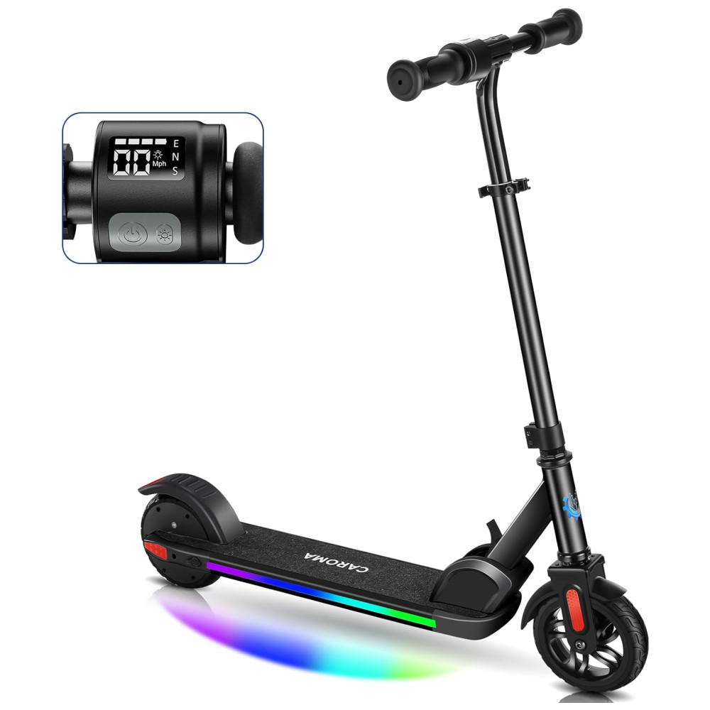 Patinete Elétrico Infantil Dobrável com Velocidade e Altura Ajustáveis Luzes Coloridas e Display LED para Crianças de 8 a 14 Anos 150W Caroma E35 Preto