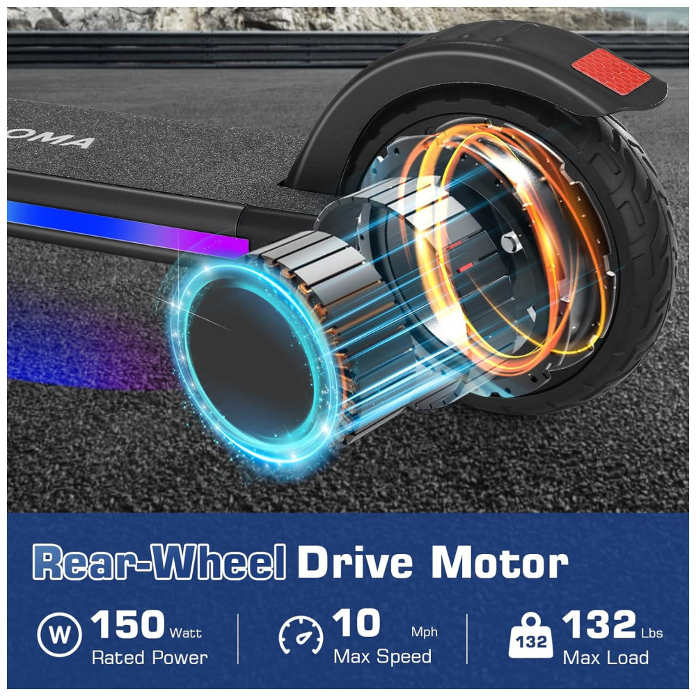 A scooter elétrica Caroma é perfeita para crianças de 8 a 12 anos que desejam se divertir com segurança. Com cinco opções de cores disponíveis, a scooter vem equipada com pedais coloridos que não apenas tornam a condução elegante e divertida, mas também melhoram a visibilidade e a segurança na estrada. A scooter possui um motor potente de 150 W e três modos de velocidade, permitindo que você ajuste a velocidade máxima de 8 km/h, 12 km/h ou 16 km/h de acordo com sua preferência e condições de pilotagem.