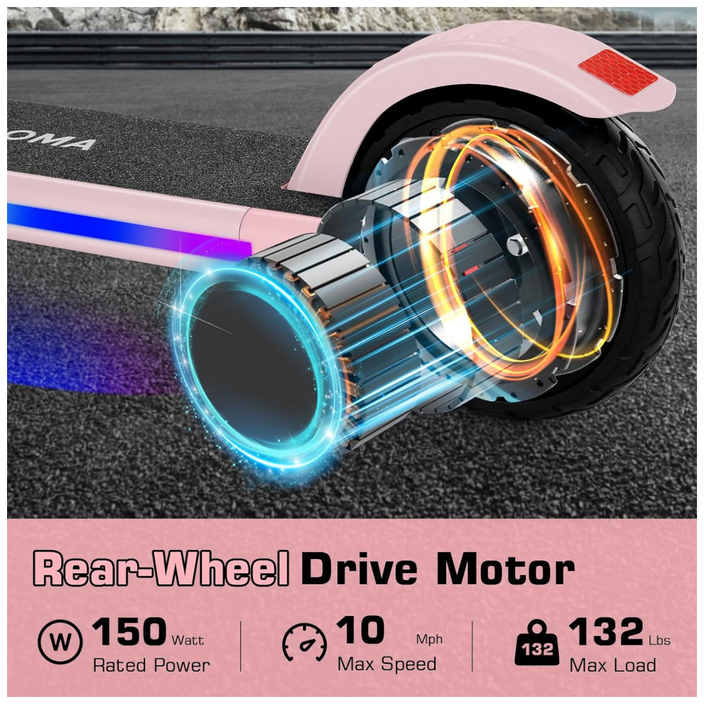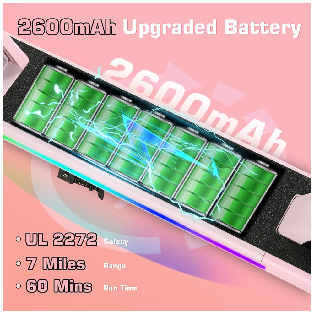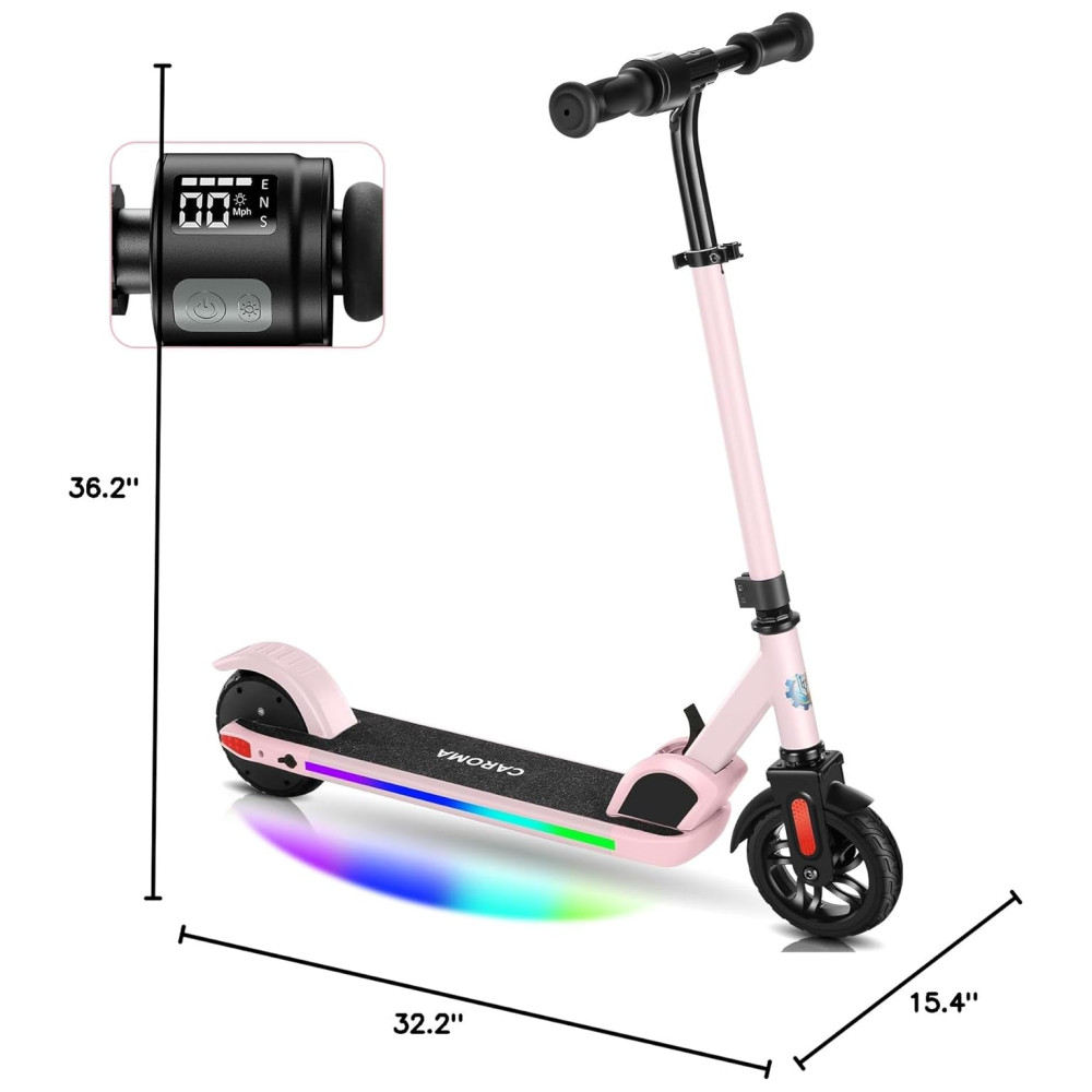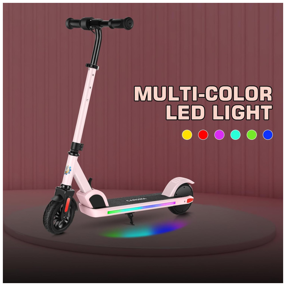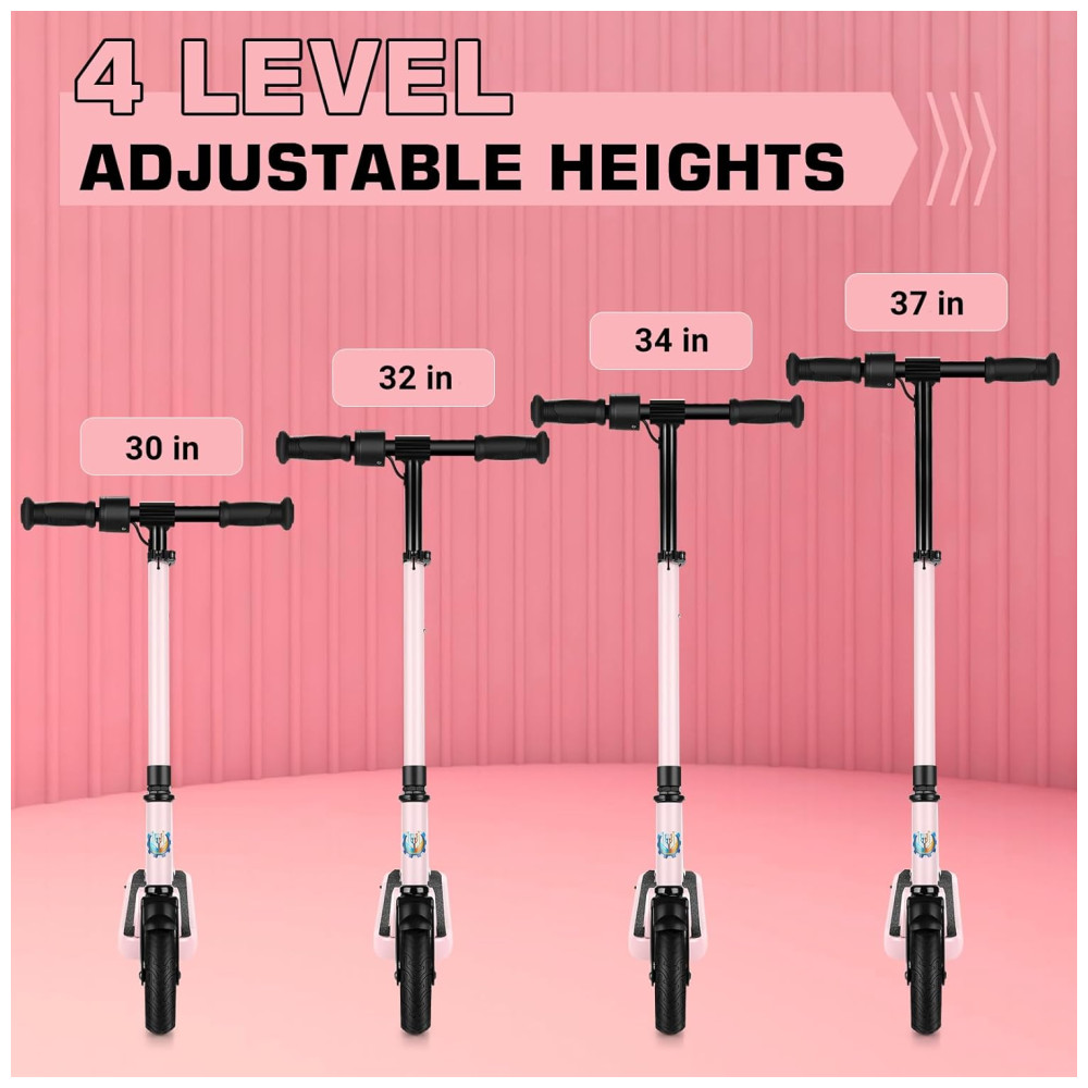 Patinete Elétrico Infantil Dobrável com Velocidade e Altura Ajustáveis Luzes Coloridas e Display LED para Crianças de 8 a 14 Anos 150W Caroma E35 Rosa