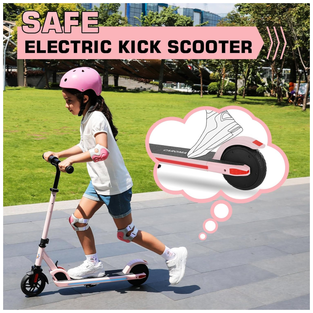 A scooter elétrica Caroma é perfeita para crianças de 8 a 12 anos que desejam se divertir com segurança. Com cinco opções de cores disponíveis, a scooter vem equipada com pedais coloridos que não apenas tornam a condução elegante e divertida, mas também melhoram a visibilidade e a segurança na estrada. A scooter possui um motor potente de 150 W e três modos de velocidade, permitindo que você ajuste a velocidade máxima de 8 km/h, 12 km/h ou 16 km/h de acordo com sua preferência e condições de pilotagem.