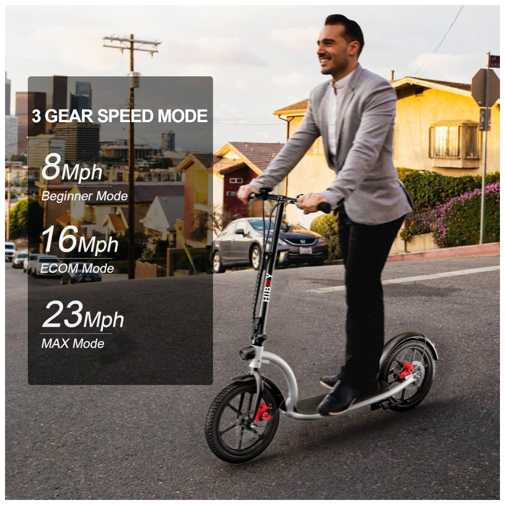 Segurança com HIBOY Scooter freios a disco duplos tornam o VE1 Pro mais confortável e ao andar. A tração traseira transfere o peso para trás, melhorando a tração e a facilidade de direção.