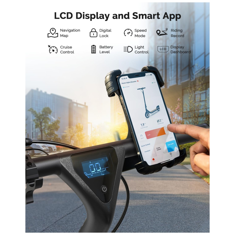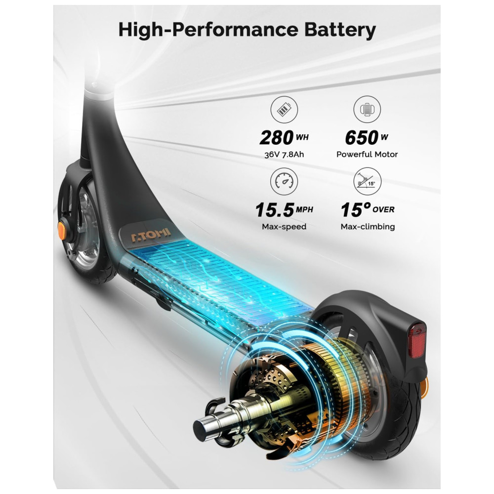 DESEMPENHO PODEROSO Equipado com motor traseiro potente de Max 650W. A scooter elétrica ALPHA para adultos permite que você aproveite a aceleração e o torque rápidos, carregue 120 kg e suba em colinas de 20 .