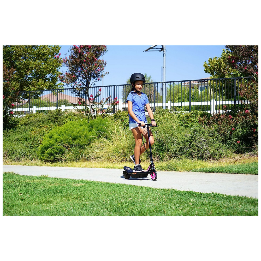 Patinete Elétrico para Crianças Acima de 8 anos Peso Max 55kg Razor E90 Preto e Rosa