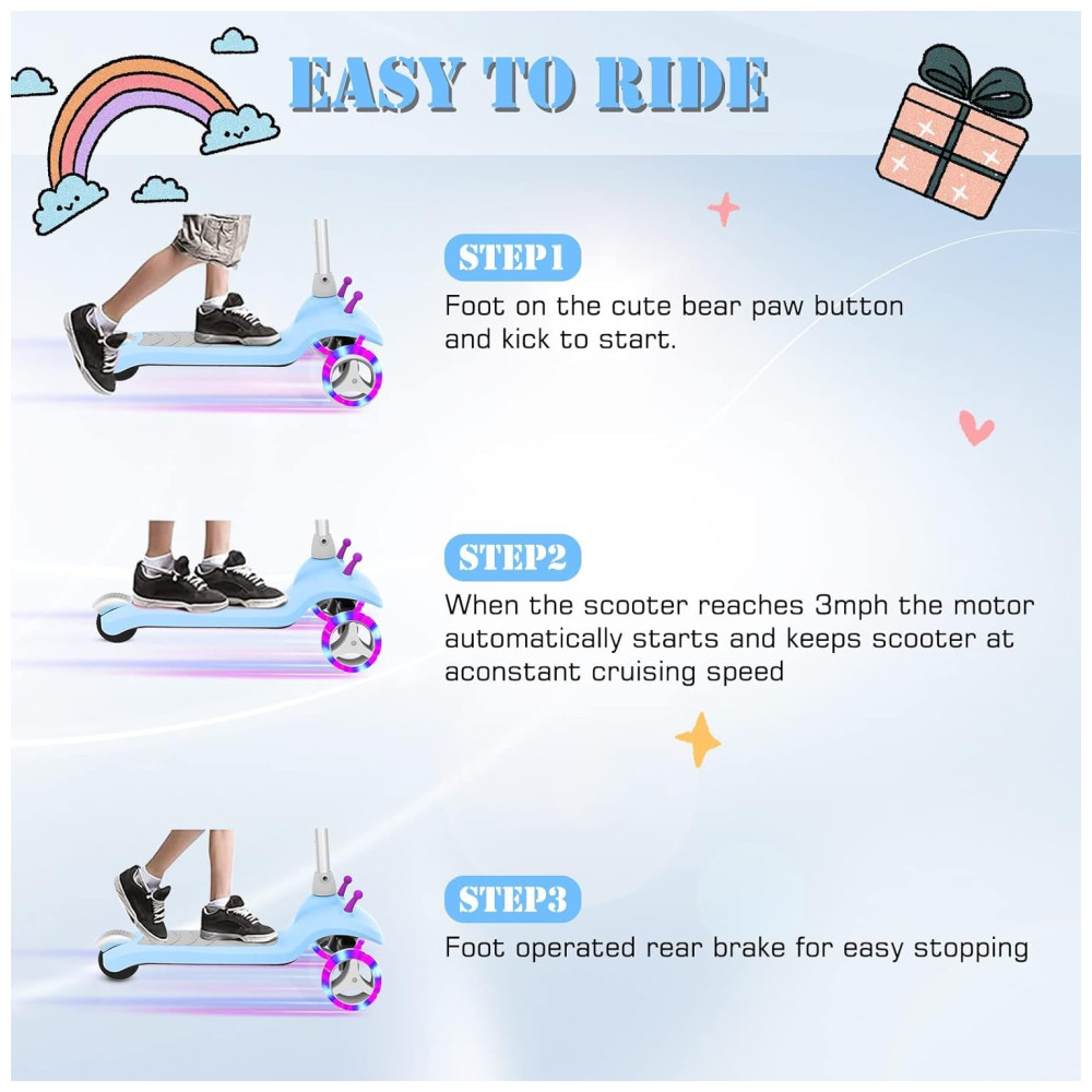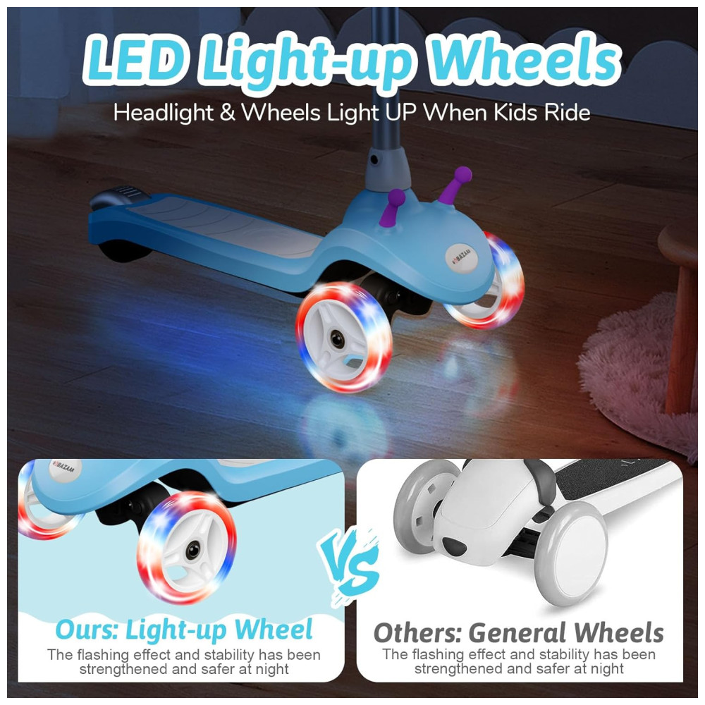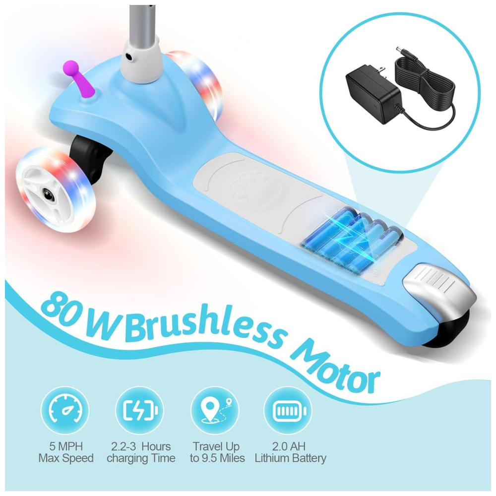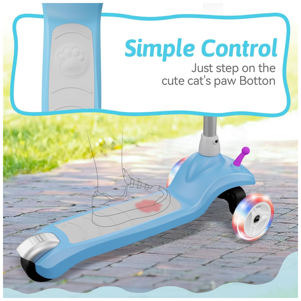 Patinete Elétrico para Crianças de 2 a 8 anos com 3 Rodas e LED Peso Max 50kg Gobazaar Azul