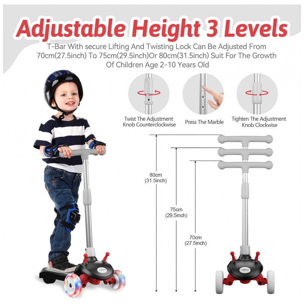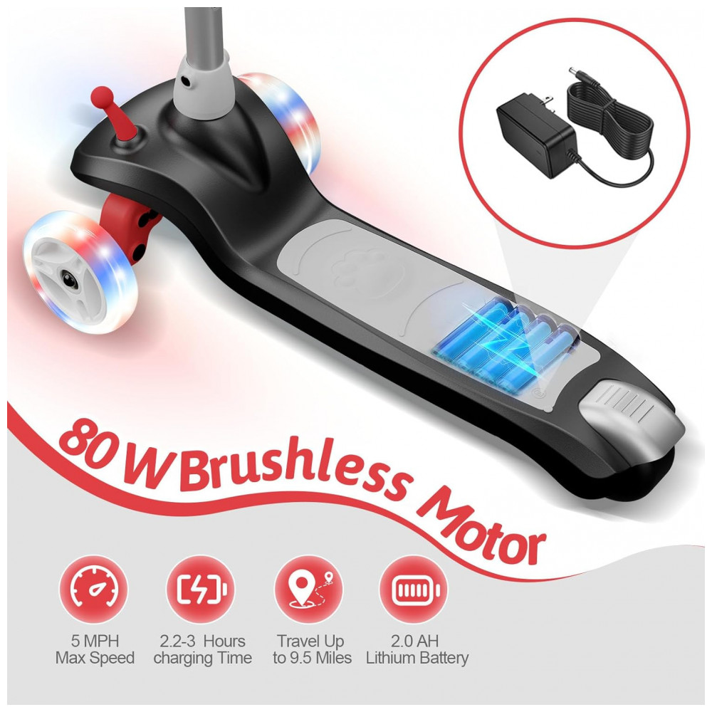 Patinete Elétrico para Crianças de 2 a 8 anos com 3 Rodas e LED, Peso Max 50kg, Gobazaar, Preto