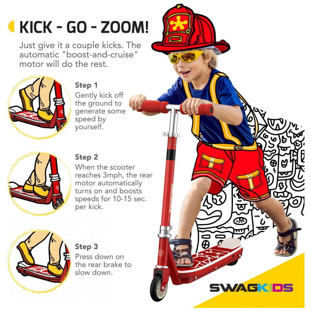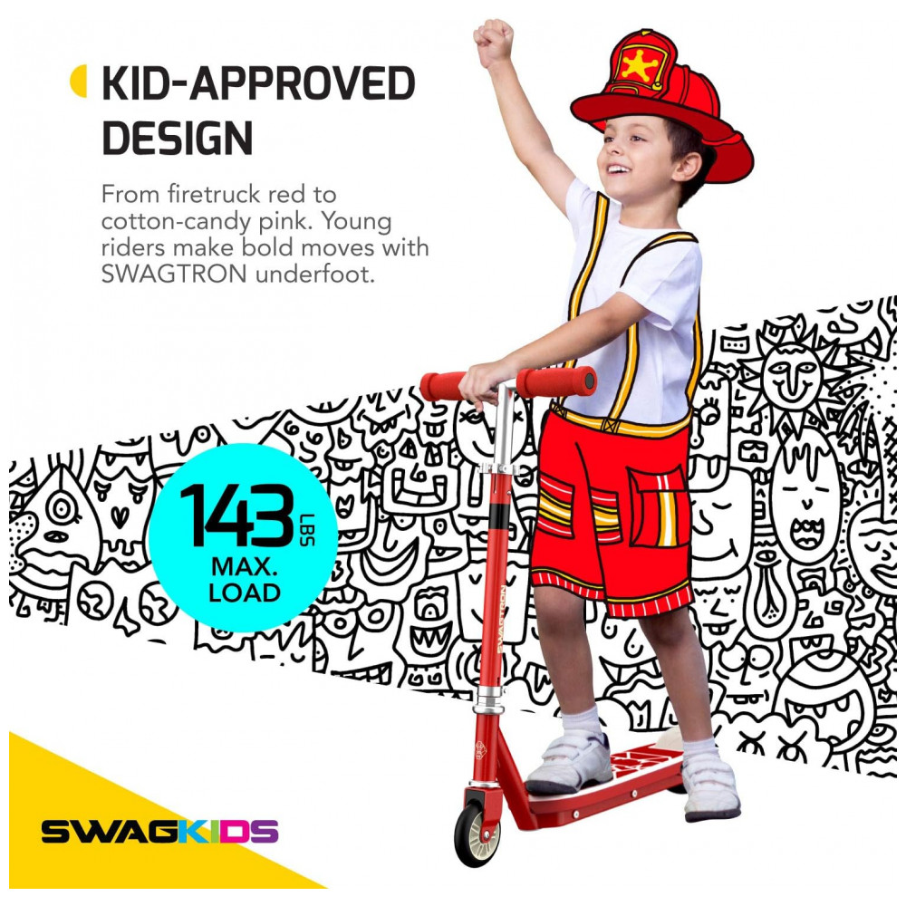 Patinete Elétrico para Crianças de 5 a 9 anos em Aço Inoxidável Peso Max 70kg Swagtron SK Rosa