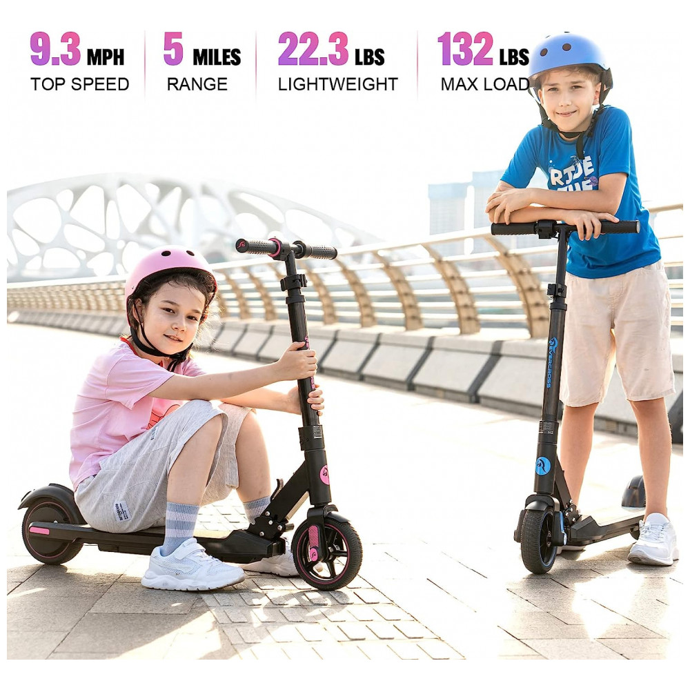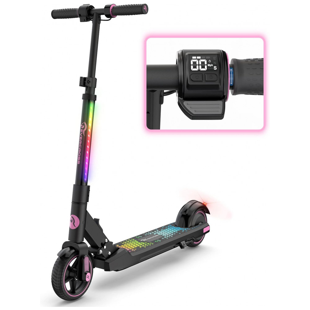Patinete Elétrico para Crianças de 6 a 12 anos com Display de LED Peso Max 60kg EVERCROSS EV06C Preto e Rosa