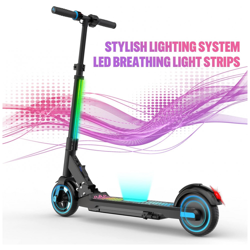 ADAPTADO PARA CRIANÇAS A haste da scooter elétrica EV06C para crianças pode ser ajustada entre 0 e à vontade e a altura da alça. Além disso, a carga máxima é de 60 kg, o que significa que este e A scooter é feita sob medida para crianças de 6 a 12 anos.