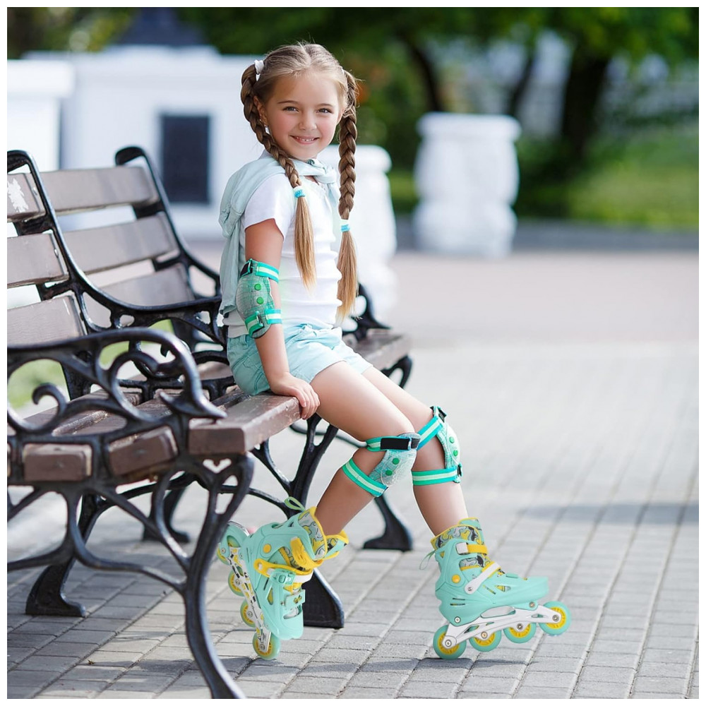 Conforto e Durabilidade: Os patins em linha são especialmente projetados para iniciantes Desfrute de um passeio suave, silencioso e confiante na estrutura de alumínio reforçado, rodas de poliuretano 82A e rolamentos ABEC 7 de alta qualidade. O forro macio proporciona boa absorção de suor, com acolchoamento extra na frente para evitar que os dedos dos pés do seu filho se machuquem.