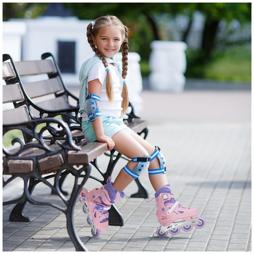 Conforto e Durabilidade: Os patins em linha são especialmente projetados para iniciantes Desfrute de um passeio suave, silencioso e confiante na estrutura de alumínio reforçado, rodas de poliuretano 82A e rolamentos ABEC 7 de alta qualidade. O forro macio proporciona boa absorção de suor, com acolchoamento extra na frente para evitar que os dedos dos pés do seu filho se machuquem.