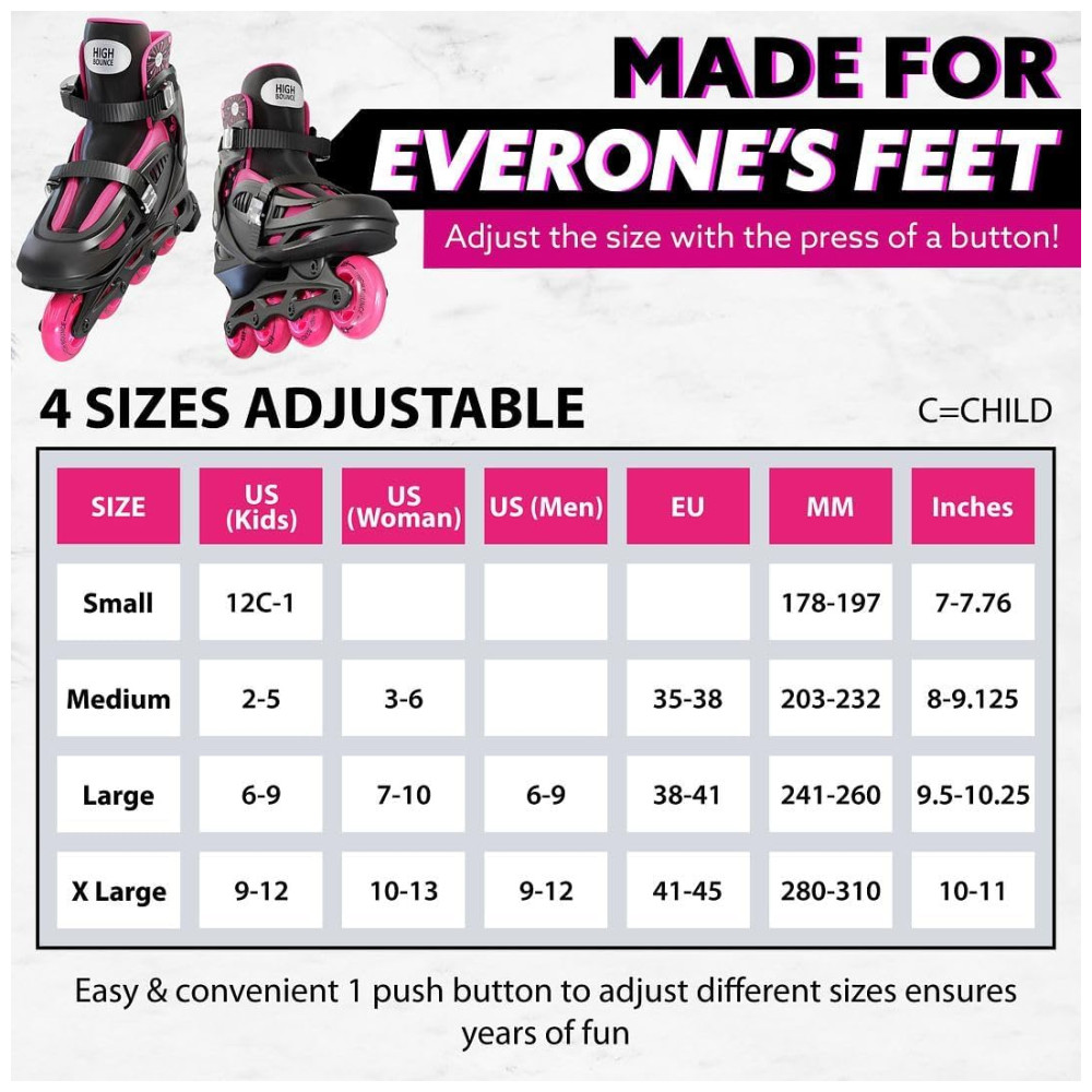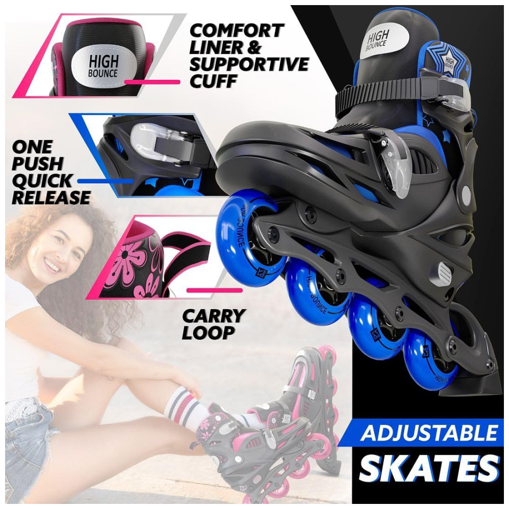 Versatilidade sem Limites: Estes patins em linha foram projetados para se adaptar a todas as idades, garantindo uma experiência de patinação perfeita para meninos e meninas, bem como para os adultos que buscam uma maneira divertida de se exercitar.