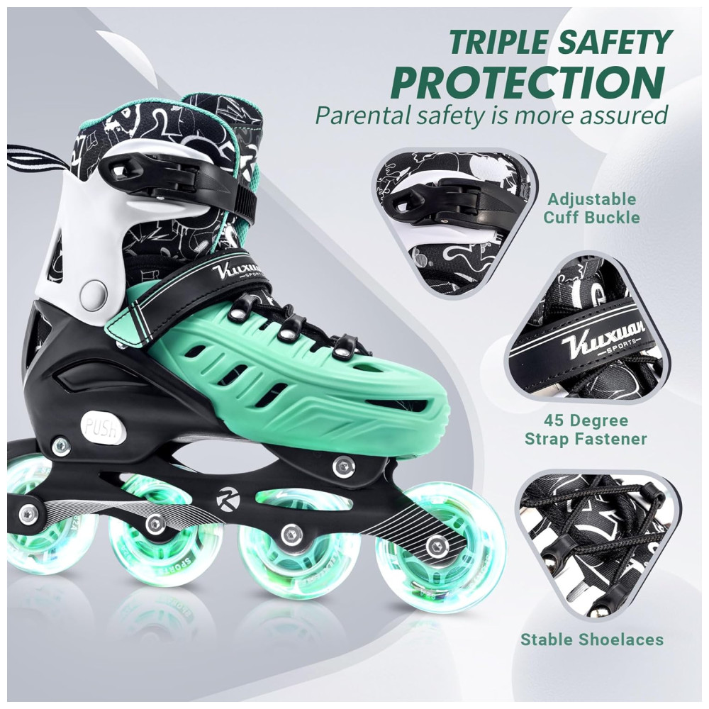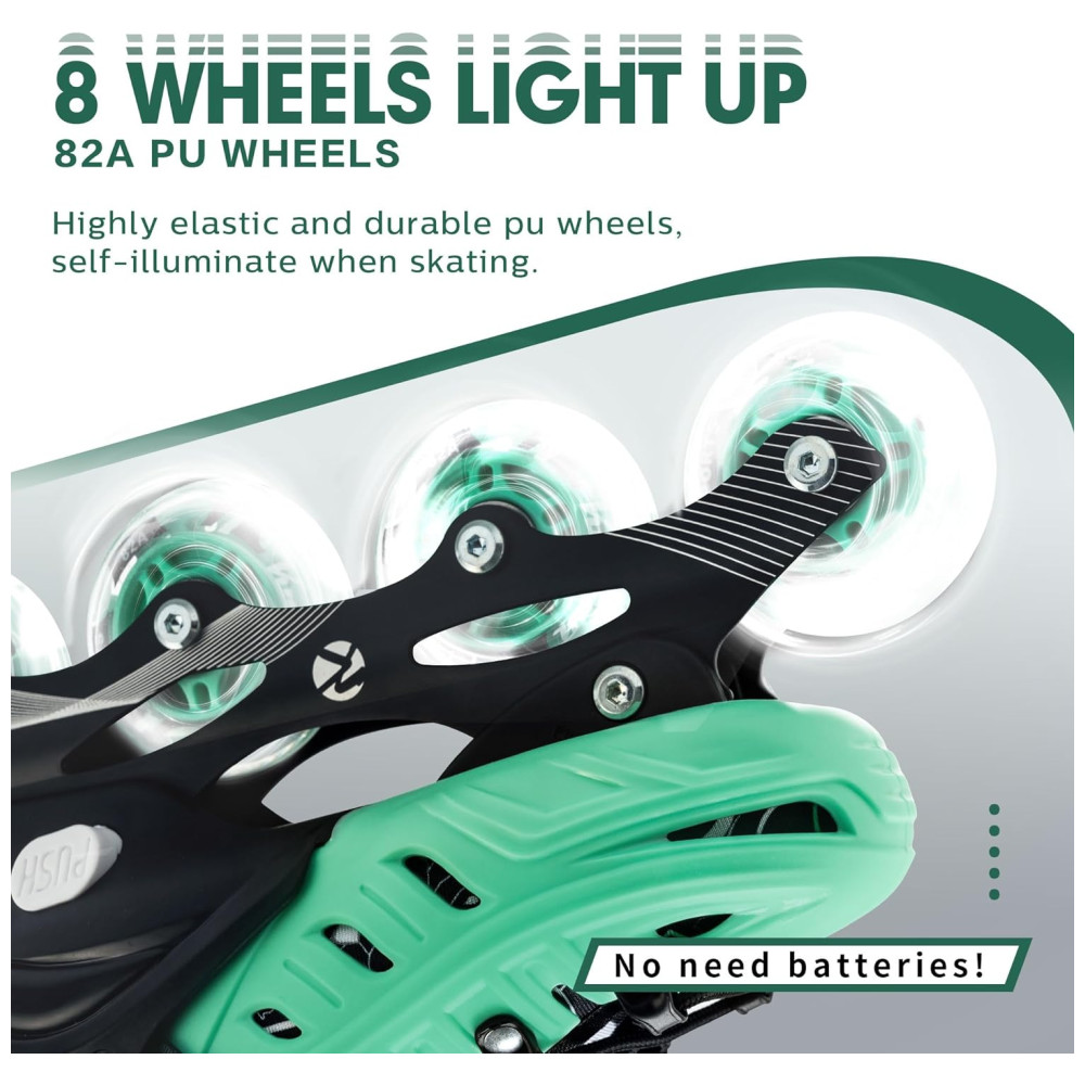 Patins Regulável e Ajustável para Crianças com Rodas Iluminadas Tam BR 33 a 37 Kuxuan Verde