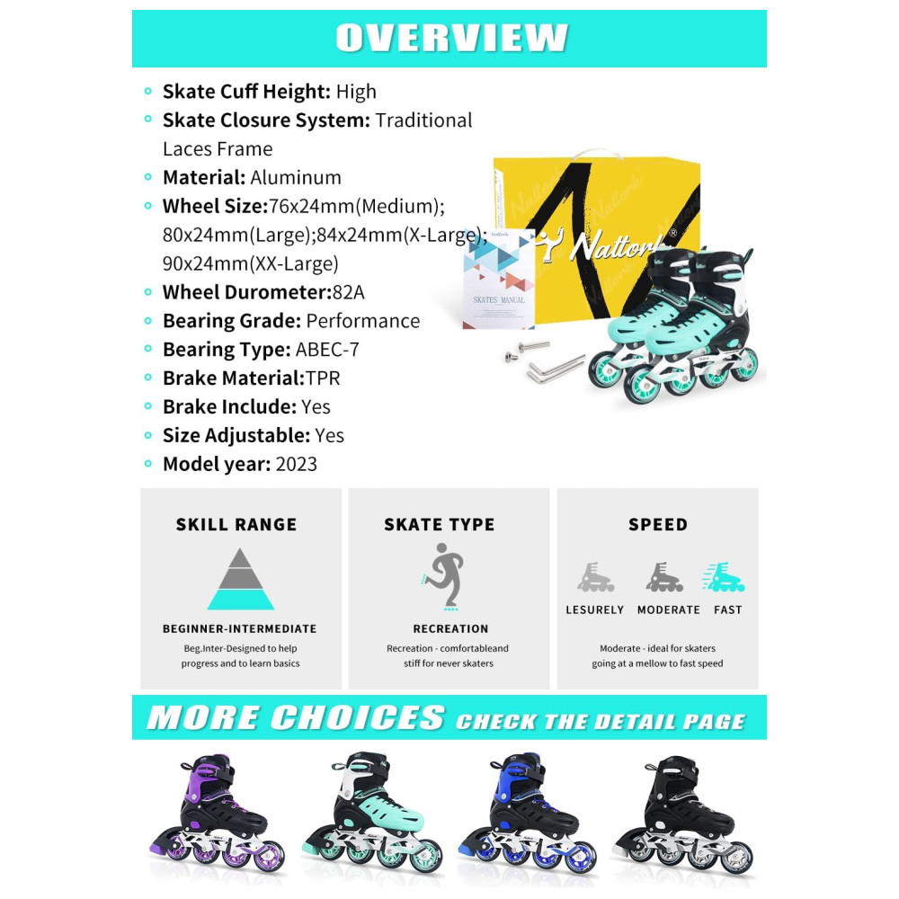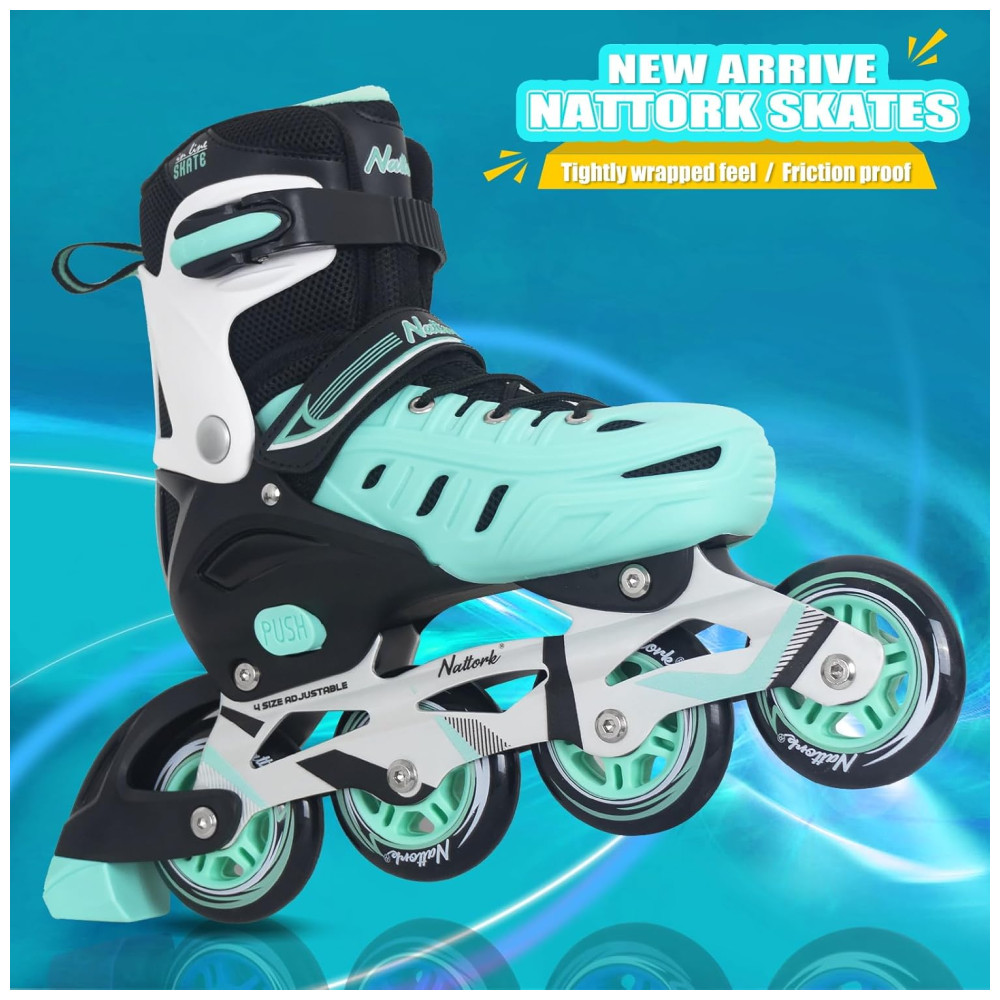 Design elaborado: Os patins Nattork em linha apresentam um design elegante e aerodinâmico. A concha de plástico proporciona excelente suporte e proteção para o pé e tornozelo, reduzindo o risco de lesões durante a patinação. O design também incorpora canais de ventilação para promover o fluxo de ar e manter os pés frescos.