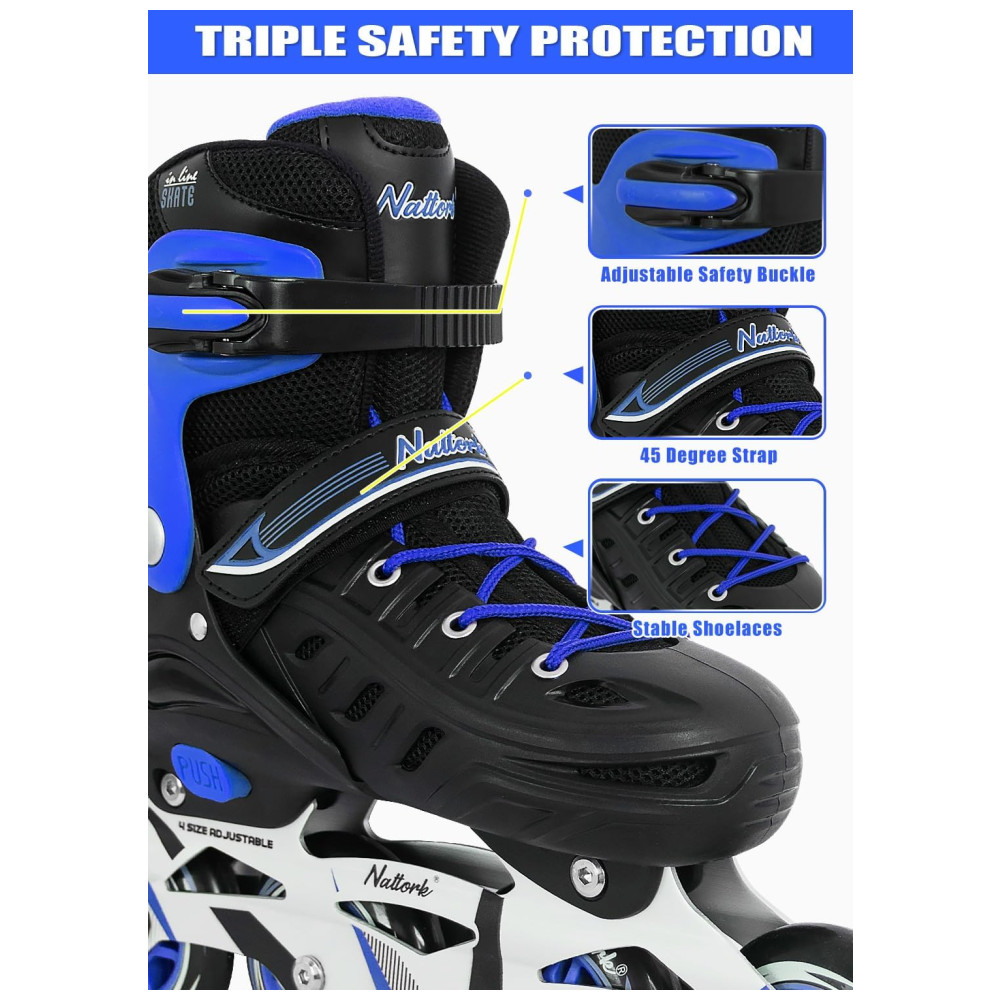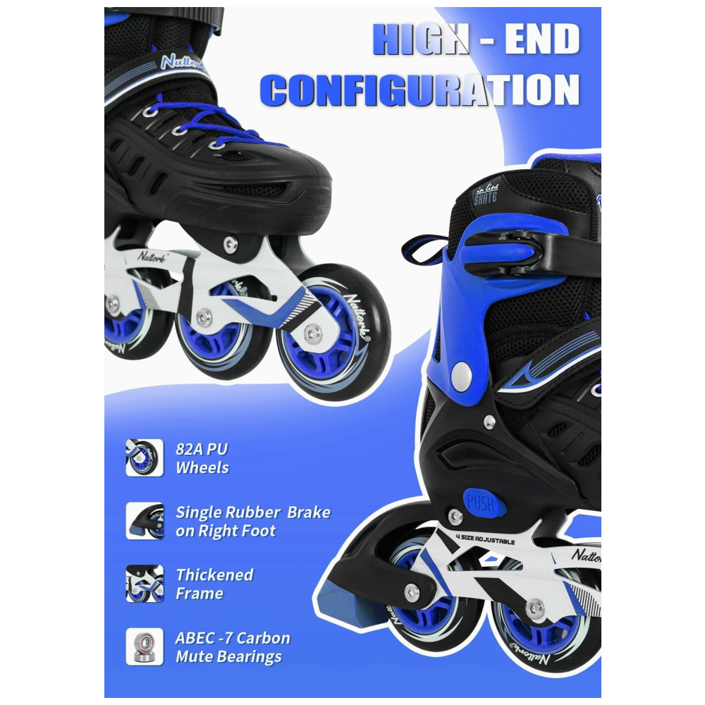 Design elaborado: Os patins Nattork em linha apresentam um design elegante e aerodinâmico. A concha de plástico proporciona excelente suporte e proteção para o pé e tornozelo, reduzindo o risco de lesões durante a patinação. O design também incorpora canais de ventilação para promover o fluxo de ar e manter os pés frescos.