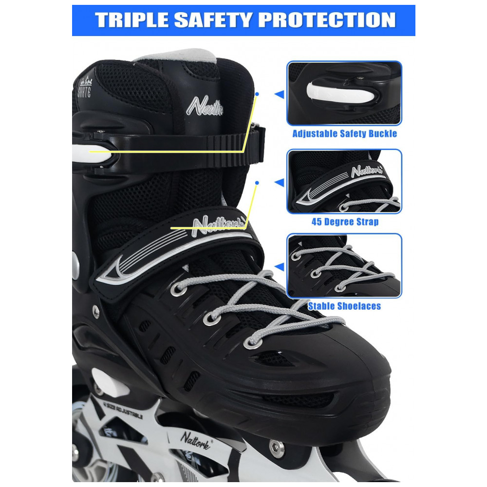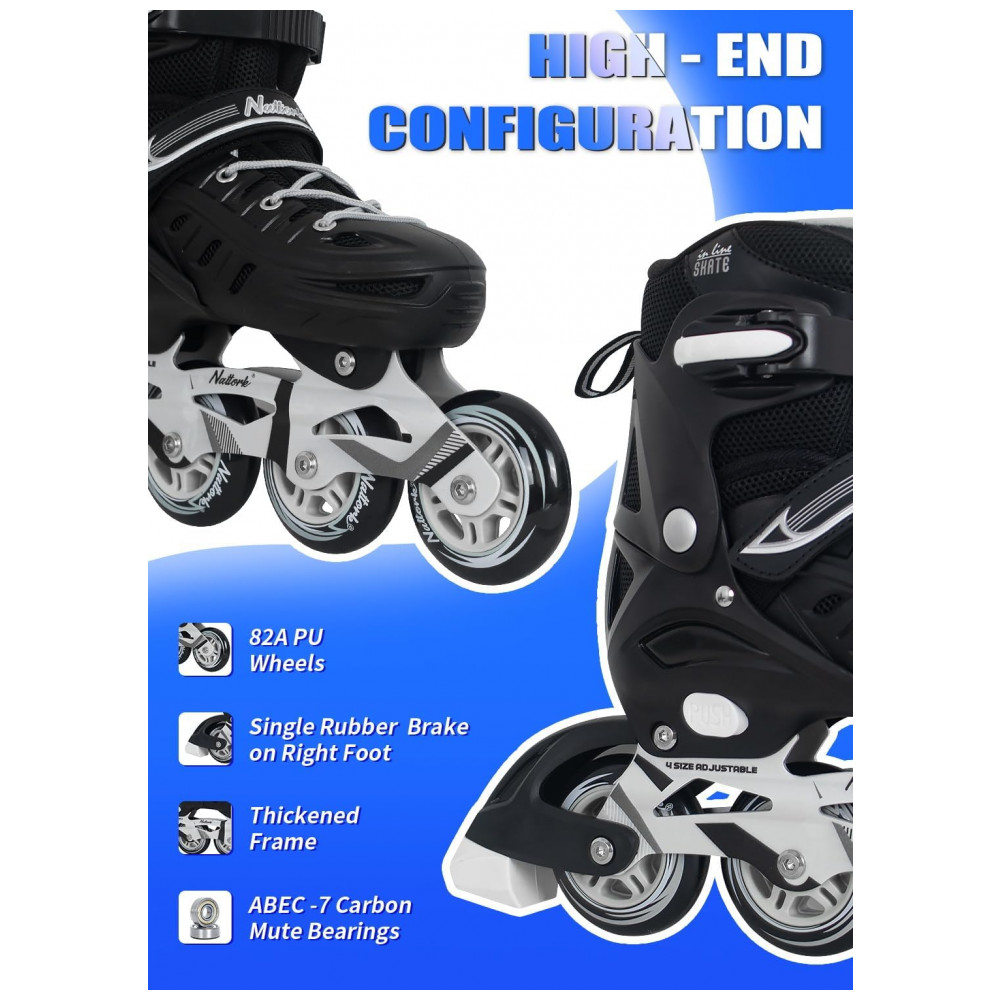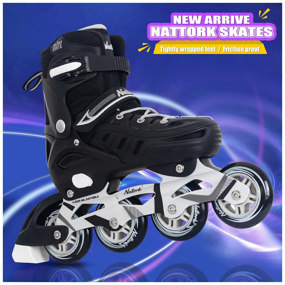 Design elaborado: Os patins Nattork em linha apresentam um design elegante e aerodinâmico. A concha de plástico proporciona excelente suporte e proteção para o pé e tornozelo, reduzindo o risco de lesões durante a patinação. O design também incorpora canais de ventilação para promover o fluxo de ar e manter os pés frescos.