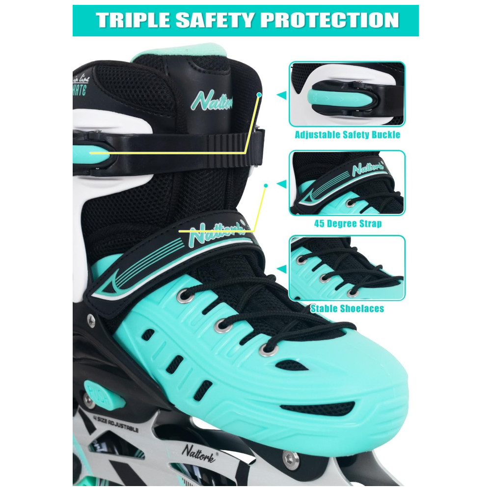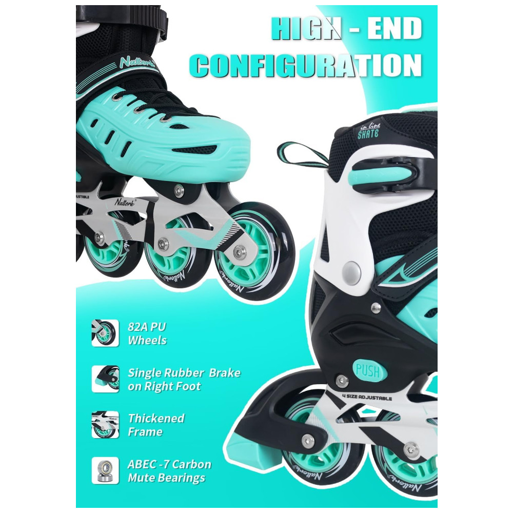 Design elaborado: Os patins Nattork em linha apresentam um design elegante e aerodinâmico. A concha de plástico proporciona excelente suporte e proteção para o pé e tornozelo, reduzindo o risco de lesões durante a patinação. O design também incorpora canais de ventilação para promover o fluxo de ar e manter os pés frescos.