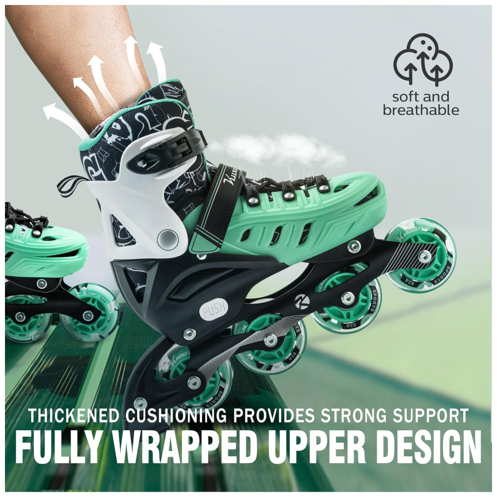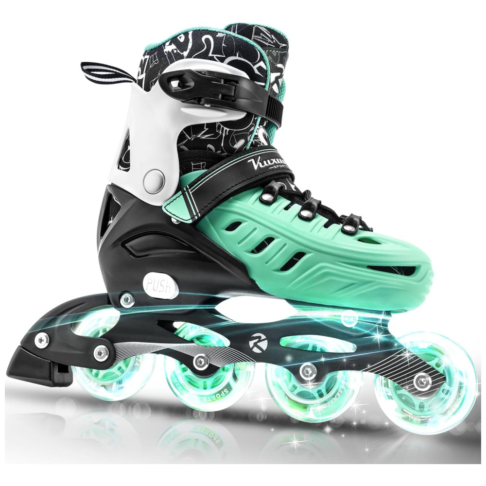 Patins Regulável e Ajustável para Jovens e Adultos com Rodas Iluminadas Tam BR 37 a 40 Kuxuan Verde