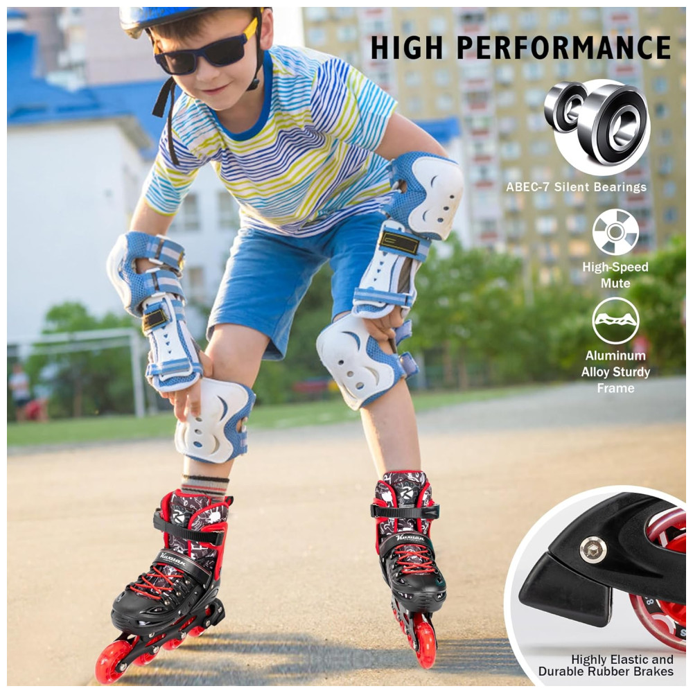 TAMANHO AJUSTÁVEL: Verifique nossa tabela de tamanhos na imagem do produto para garantir a escolha do par correto. Com um simples botão de ajuste facilita e torna conveniente a adaptação a diferentes tamanhos, garantindo anos de diversão. Não é mais necessário se preocupar com o crescimento dos pés do seu filho.