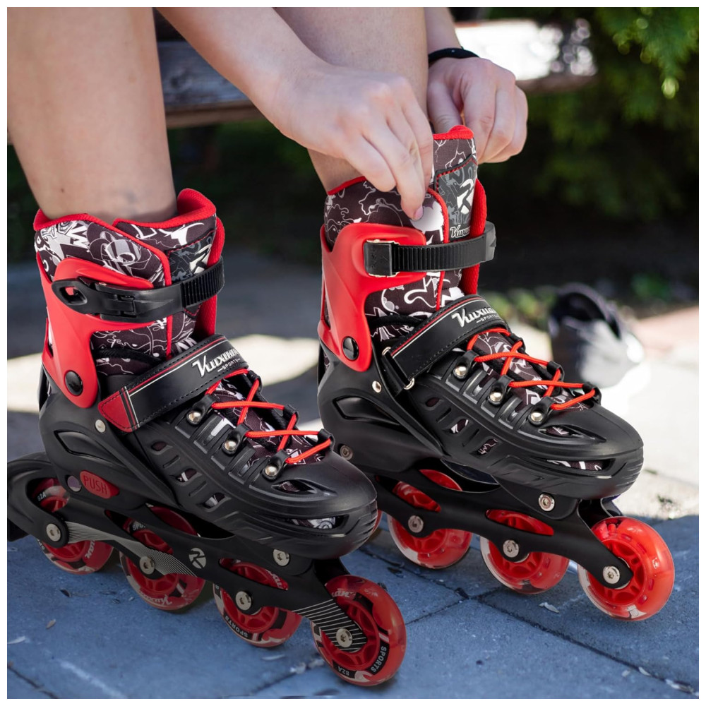 Patins Regulável e Ajustável para Jovens e Adultos com Rodas Iluminadas Tam BR 37 a 40 Kuxuan Vermelho