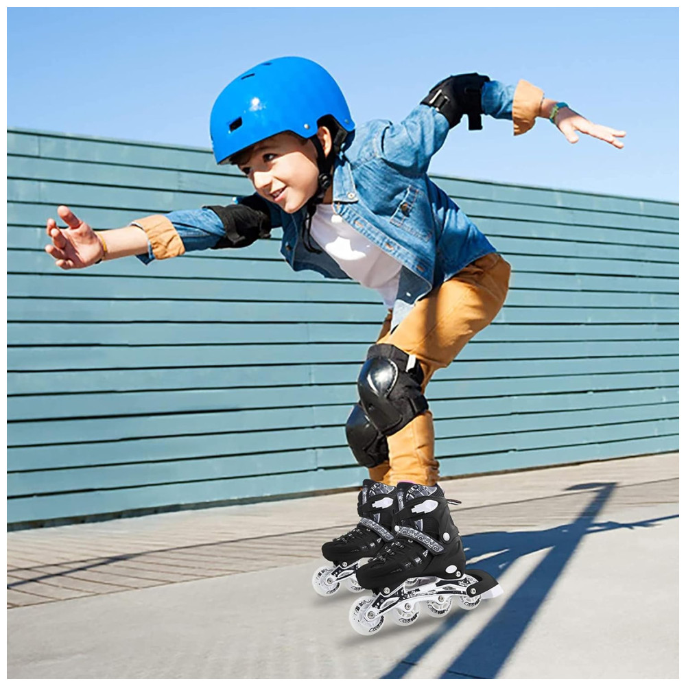 Oito Rodas LED: Nossos patins em linha contam com oito rodas iluminadas que acendem automaticamente ao começar a patinar. As luzes são alimentadas pelo movimento das rodas, eliminando a necessidade de substituição de bateria Imagine como seria incrível piscar intensamente como uma luz no escuro Seus filhos vão adorar essa experiência luminosa.