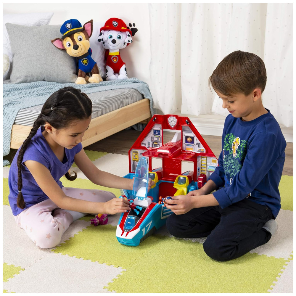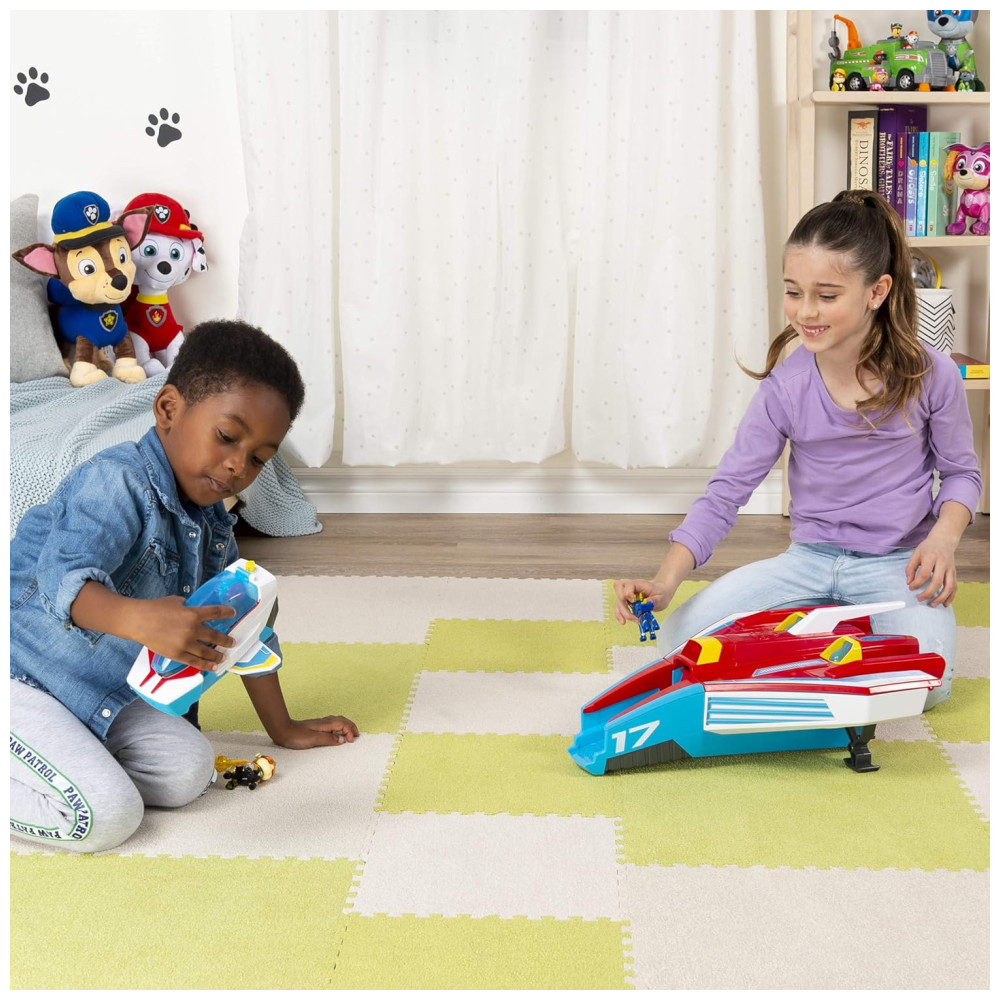 O PAW Patrol Mighty Pups Super PAWs Mighty Jet Command Center é um ótimo presente para crianças de 3 anos ou mais. Requer 3 pilhas AAA incluídas. Traga a ação e a emoção do programa de TV de sucesso para casa com o Mighty Jet Command Center