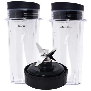 Descubra as Peças de Reposição Compatíveis com Nutri Ninja, Conjunto de Montagem da Lâmina do Liquidificador e Conjunto de 2 Copos Individuais de 473 ml para Liquidificador Profissional BL770 BL780 BL660.