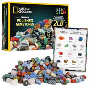Descubra a beleza e a diversidade da geologia com o National Geographic Premium Polished Stones, um conjunto de pedras e cristais lapidados pesando 0,91 kg, perfeito para crianças e adultos com interesse em ciência, educação e decoração. Este kit inclui uma variedade impressionante de gemas e minerais como ágata, ametista, quartzo azul, quartzo rosa, olho de tigre, sodalita, hematita, howlita, jaspe vermelho, jaspe dálmata, aventurina verde, unakita, obsidiana floco de neve e quartzo branco. Cada pedra foi cuidadosamente polida, revelando detalhes minuciosos e a beleza natural de cada cristal, tornando-as ideais para colecionadores, decoração de aquários, arranjos de plantas e velas, ou até mesmo para criação de joias artesanais.