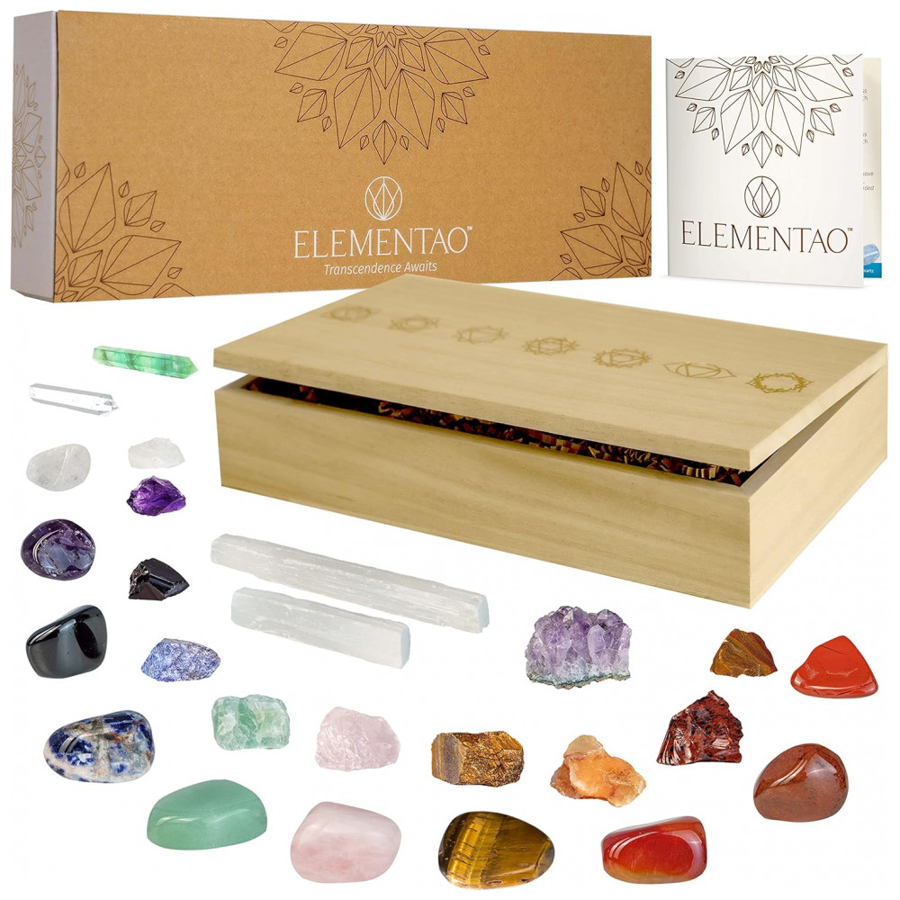 Tipos de pedras incluídas: Ágata, Ametista, Quartzo Azul, Quartzo Rosa, Olho de Tigre, Sodalita, Hematita, Howlita, Jaspe Vermelho, Jaspe Dálmata, Aventurina Verde, Unakita, Obsidiana Floco de Neve, Quartzo Branco