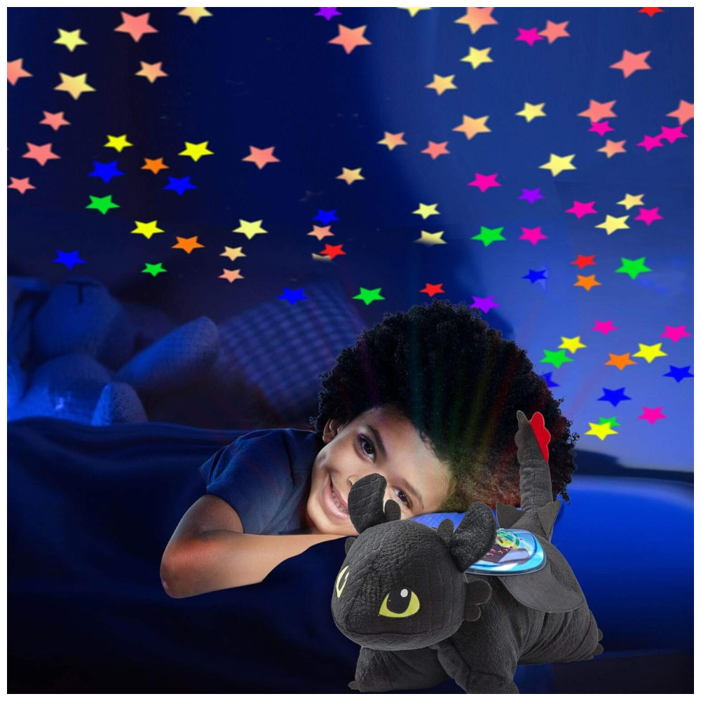 Pelúcia com Luzes Pillow Pets NBC Universal Como Treinar o Seu Dragão Banguela 28cm – Brinquedo de Pelúcia Arco-Íris Preto
