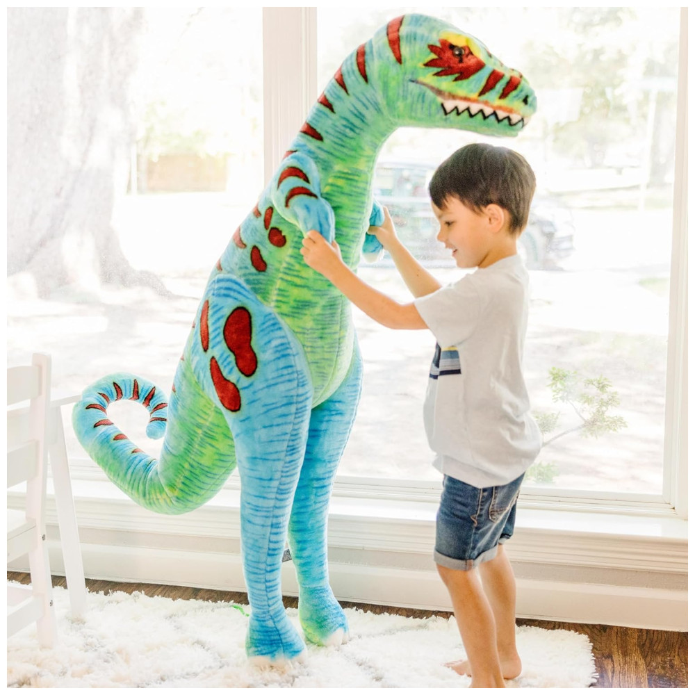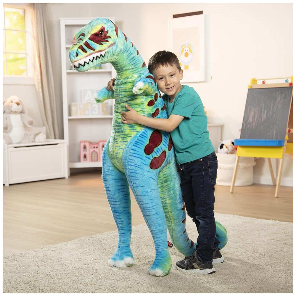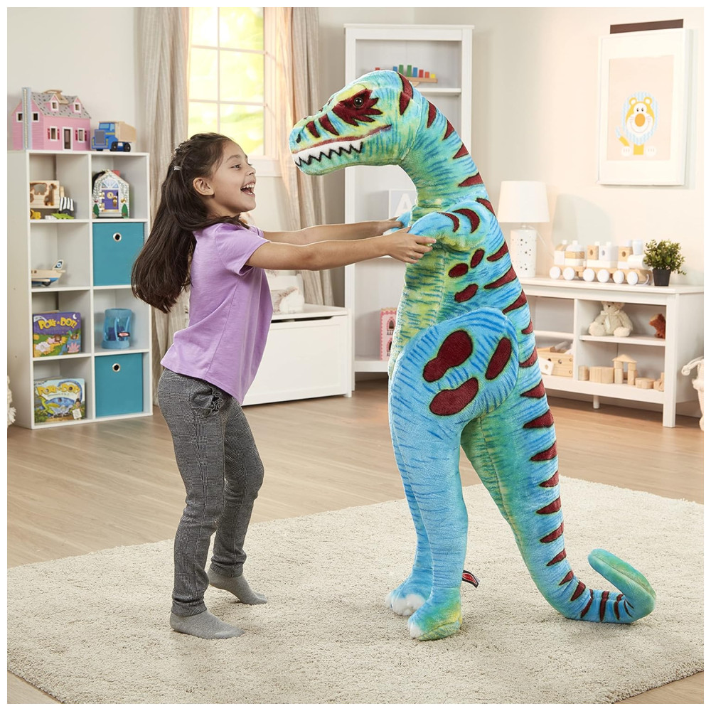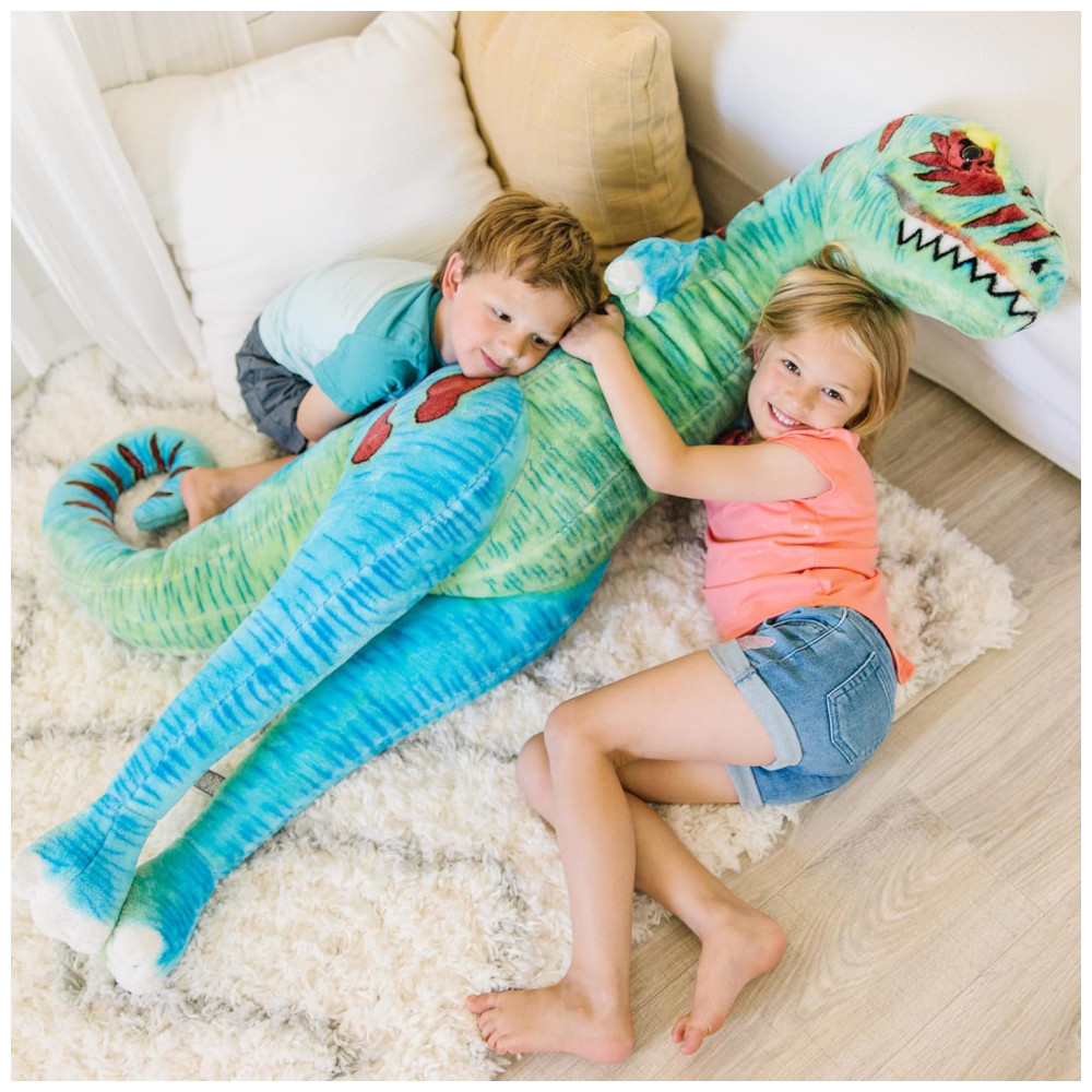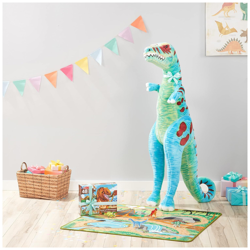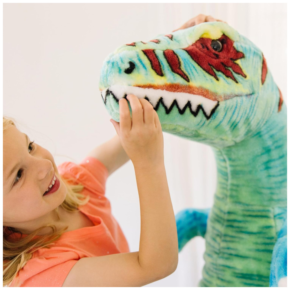 É macio ao toque e promove brincadeiras criativas e imaginativas, as crianças podem brincar de faz de conta, dar um abraço em seu TRex e até ler uma história para seu amigo grande e peludo. É um presente encantador para crianças de 3 a 6 anos e pode ser combinado com o quebra cabeça de chão de 48 peças Melissa Doug Land of Dinosaurs para completar a experiência de jogo prática e sem tela.