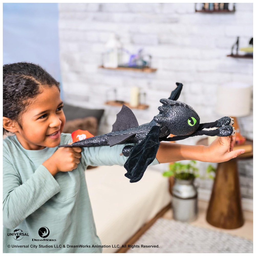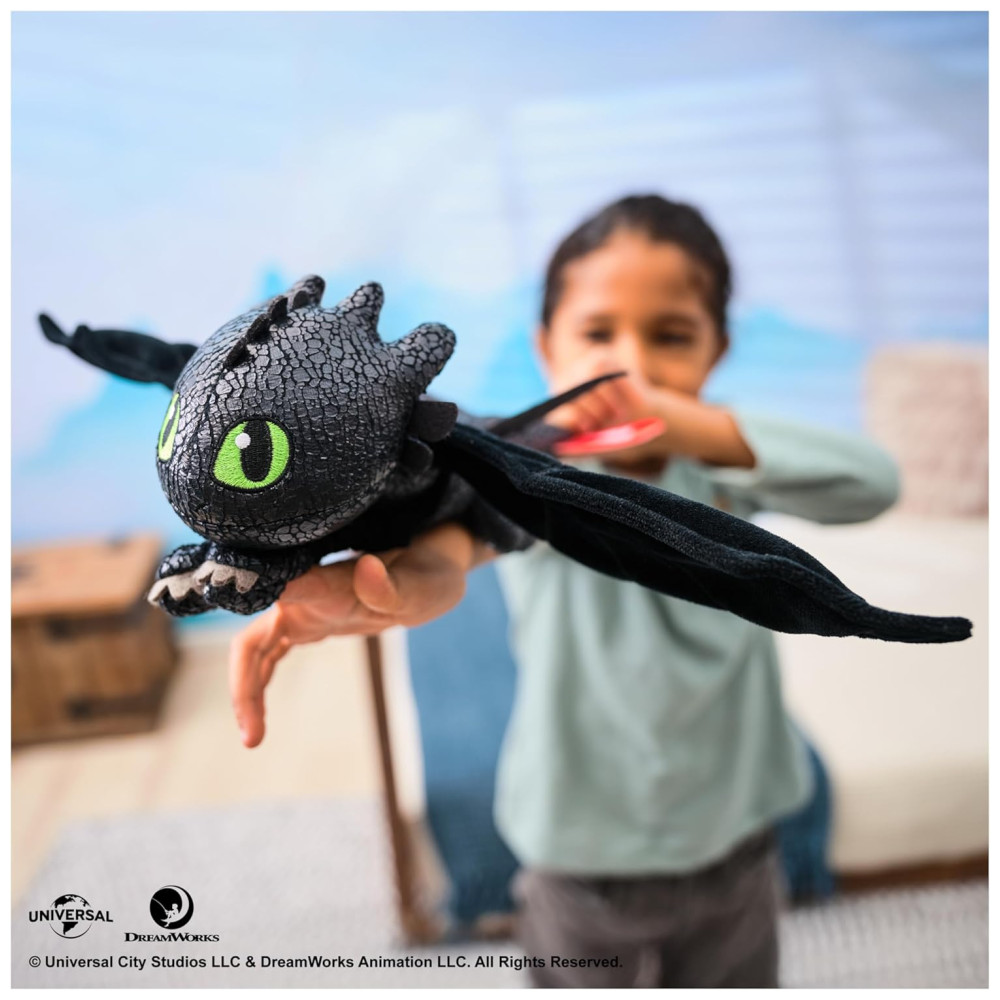 Prepare-se para voar com o Toothless! Esta inovadora pelúcia mostra o icônico dragão do filme Como Treinar o Seu Dragão com detalhes precisos, como pelúcia preta macia com escamas brilhantes, garras de feltro e olhos bordados em verde vivo. Toothless está pronto para decolar com suas grandes asas aveludadas, que alcançam 40,64 centímetros de largura, permitindo planar e te transportar para a Ilha de Berk! Basta encaixar dois dedos sob suas garras dianteiras, puxar para trás e soltar para Toothless voar pelo ar! Suas asas macias se curvam para dentro com um estalo para dar um abraço quando é hora de aconchegar. Seja para um aniversário, feriado ou qualquer celebração, este adorável dragão de pelúcia é um presente impressionante para fãs de Como Treinar o Seu Dragão e amantes de filmes familiares. Explore a coleção oficial de brinquedos para idades de 5 a 7 anos, pelúcias de dragões, figuras de ação Battle Dragons, brinquedos surpresa, brinquedos RC voadores Toothless, jogos de tabuleiro, conjuntos de figuras de brinquedo, figuras de vikings e muito mais. Cada item vendido separadamente.
